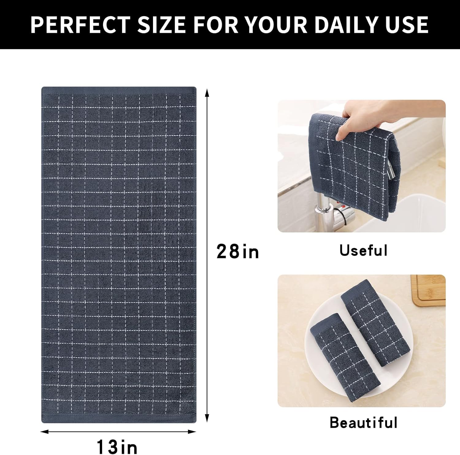 - Value Pack: The kitchen towel set includes 4 solid-color cotton kitchen towels, measuring 13 x 28 inches, in suitable quantity and good size, with better cleaning performance compared to kitchen paper towels