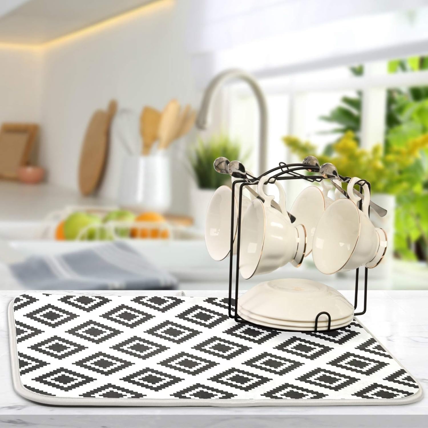 Super Absorbent Dish Drying Mat, Microfiber Fast-Drying Dish Mat, 16" x 18, Kitchen Dish Drying Pad, Grey Moroccan Rhombus Plaid