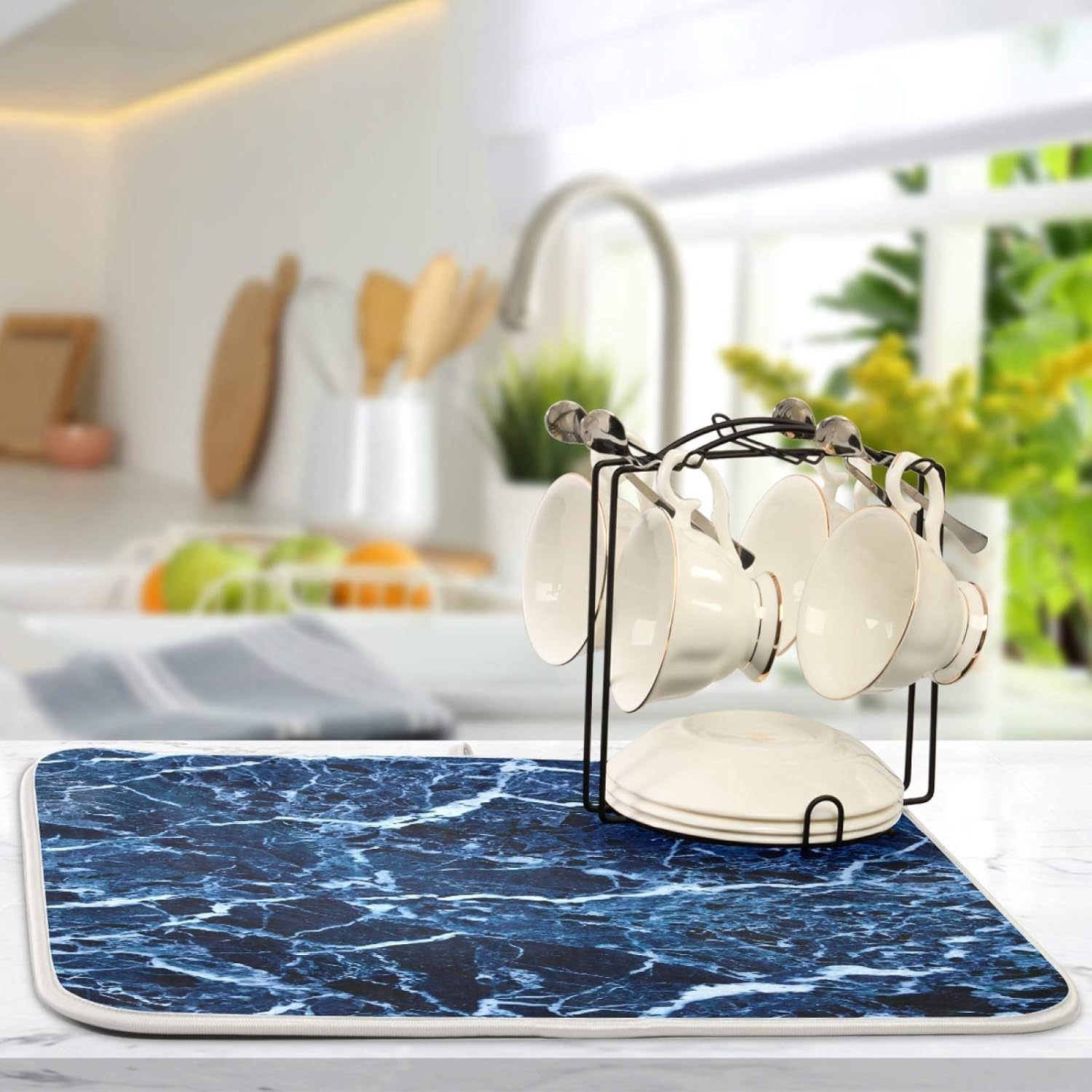 Super Absorbent Dish Drying Mat, Microfiber Fast-Drying Dish Mat, 16" x 18, Kitchen Dish Drying Pad, Navy Blue Marble…