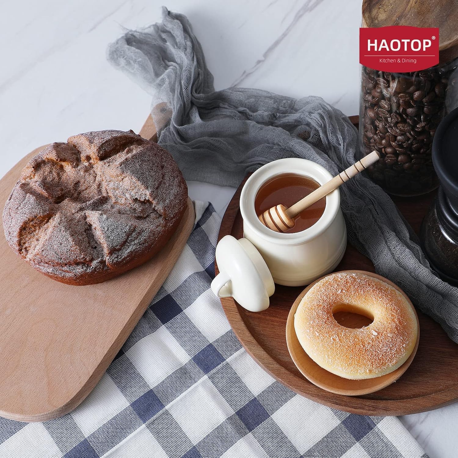 HAOTOP Ceramic Honey pot with Lid and Honey Dipper,Porcelain Honey Jar Easy to Clean and Dishwasher Safe,12oz (Beige)