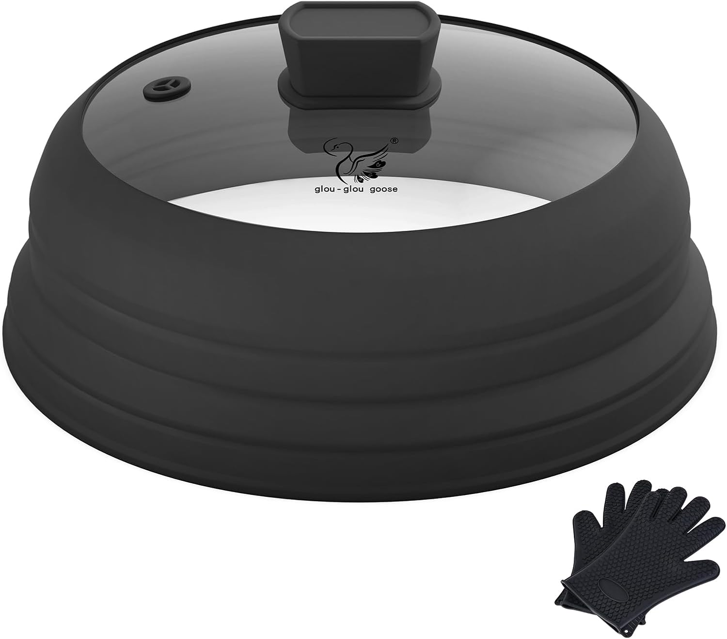 Microwave Splatter Glass Cover with Collapsible Silicone for Food Cover Plate Cover 10.8 inch with Anti-Scalding Gloves