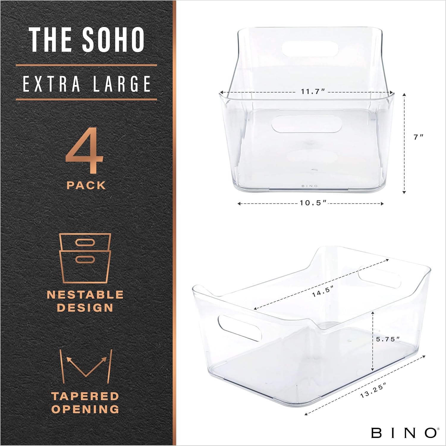 BINO | Plastic Organizer Bins, X-Large - 4 Pack | The SOHO Collection | Multi-Use Organizer Bins | Pantry & Freezer Bin | Plastic Storage Containers | Bin for Home & Kitchen Org