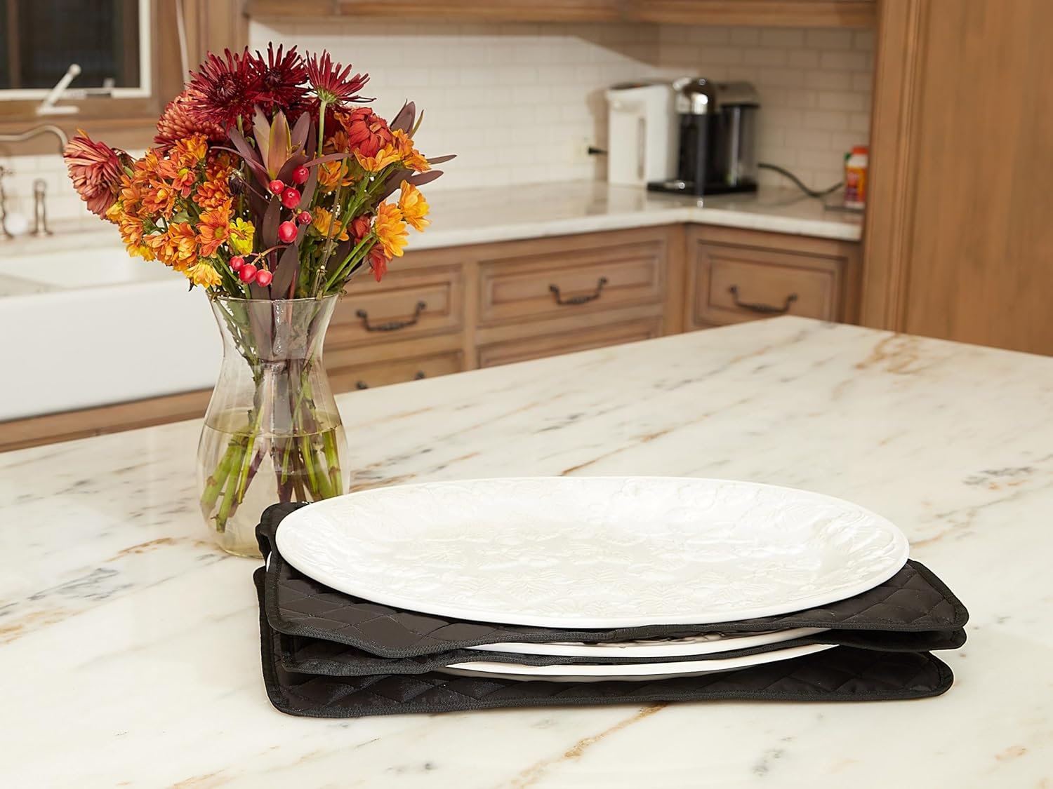 Covermates Keepsakes - Quilted Divider Set - Set of 4 - Scratch & Breakage Protection - Stain Resistant - Machine Washable - China Storage, Black