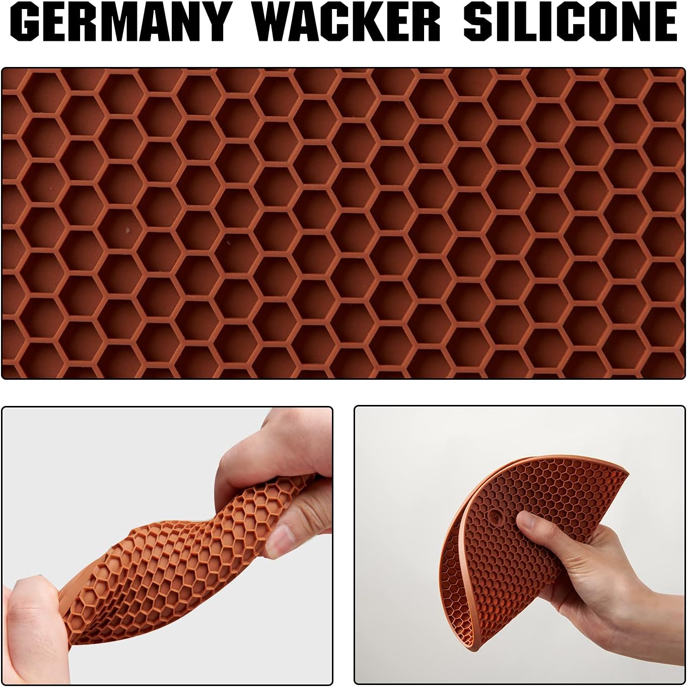 Joyhalo Trivets for Hot Dishes - Hot Pads for Kitchen, Silicone Pot Holders for Hot Pots and Pans, Silicone Mats for Kitchen Countertops, Table, Flexible Easy to Wash and Dry, Brown