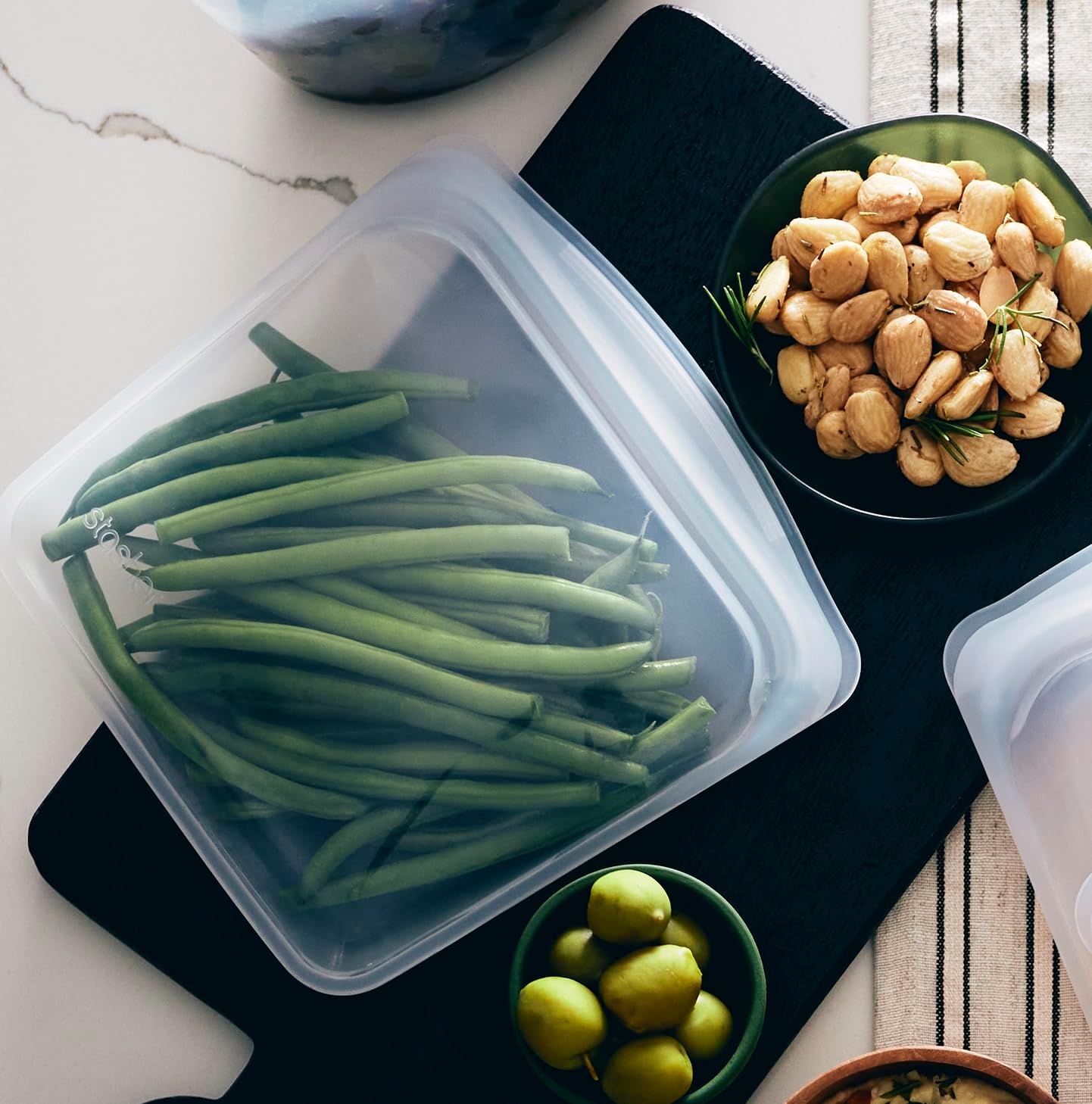 - REUSABLE, REWASHABLE CONTAINERS: Stasher silicone reusable storage bags make it easy to ditch single-use plastic and meet endless household needs. Safe for the dishwasher, microwave, oven (up to 425Β°F), and more.