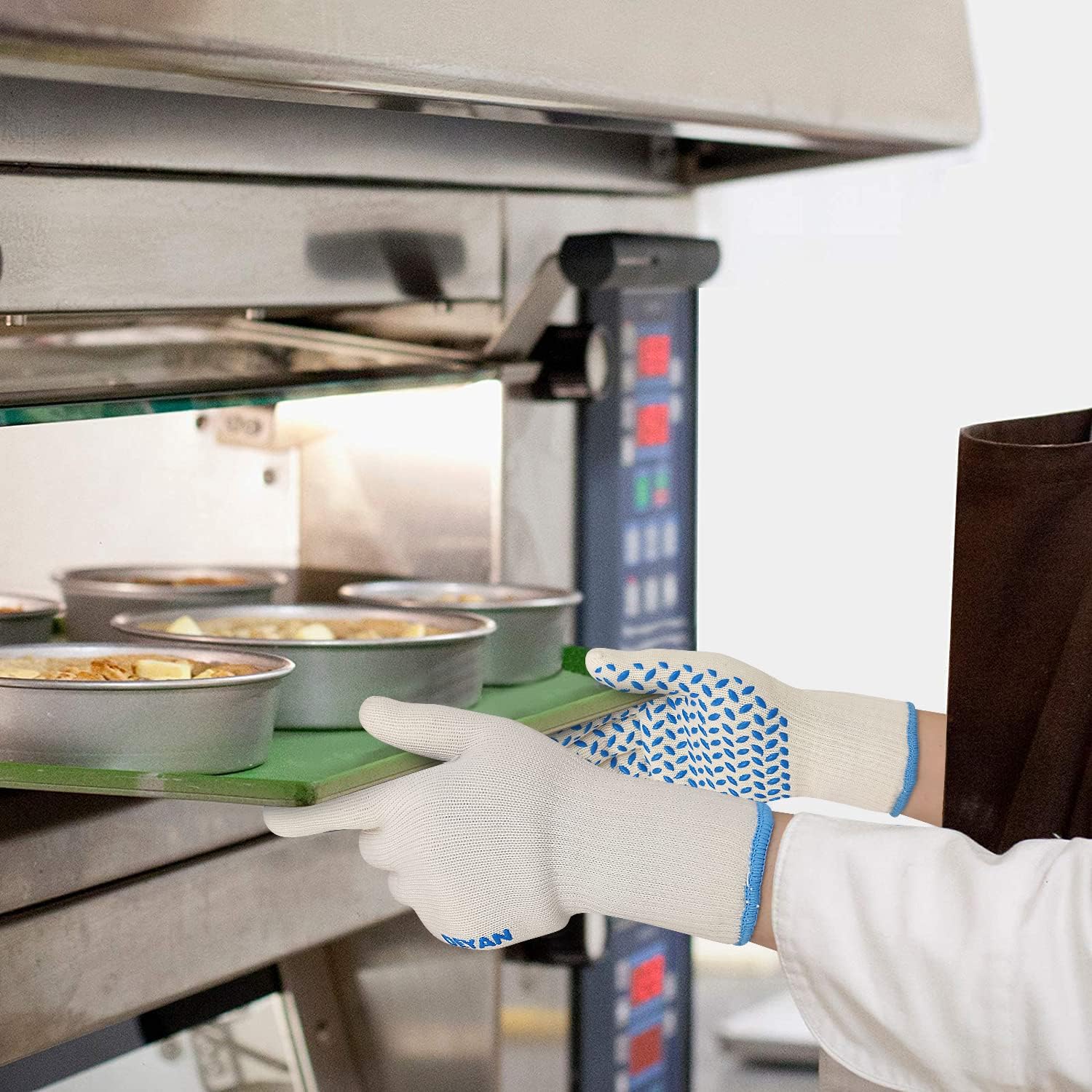 - NOTIC: Please note that it's normal to still feel some heat coming through the oven gloves. While they are heat resistant, they are not completely insulated from heat. Use caution when handling hot items