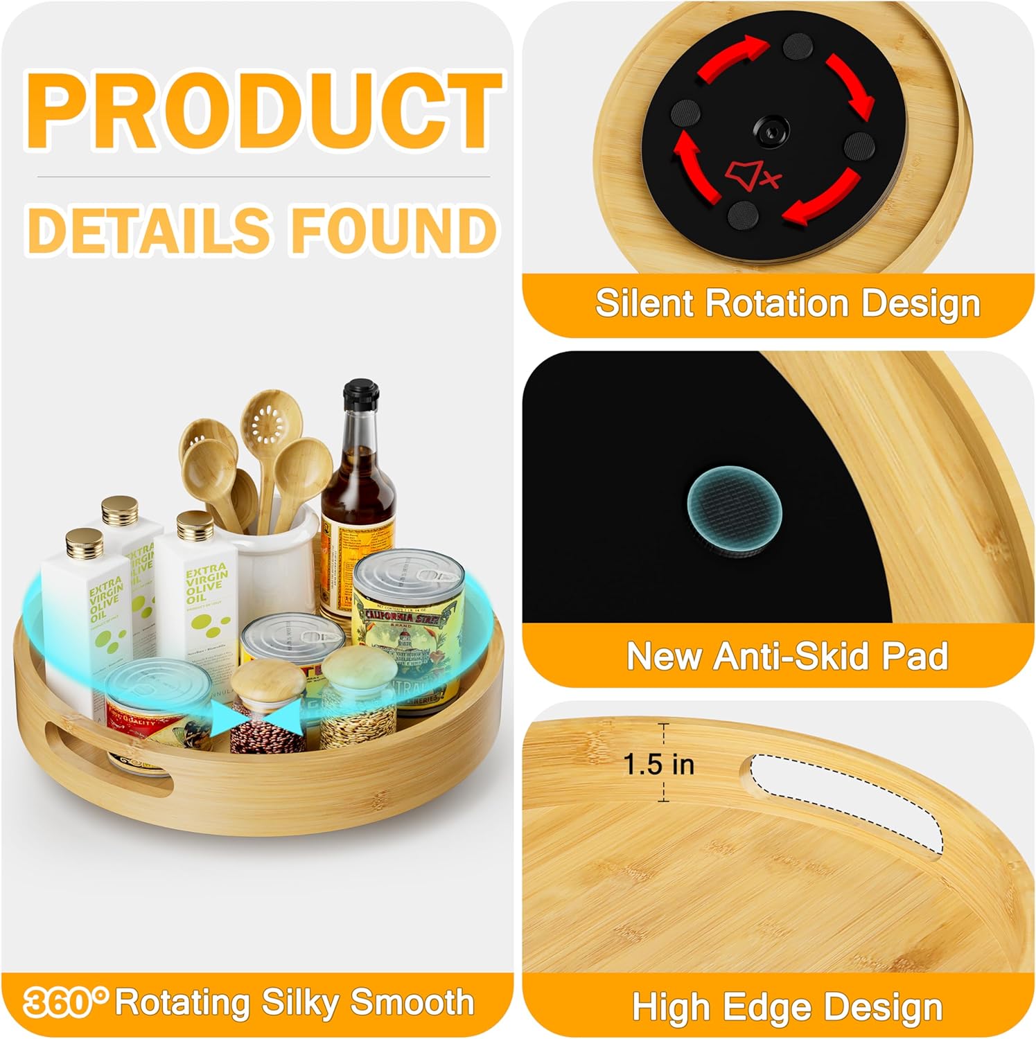 - ✔️【QUALITY MATERIAL】Bamboo lazy susan Made from 100% natural bamboo. has the quality of durable, light weight and no peculiar smell, can simply clean with a damp cloth.
