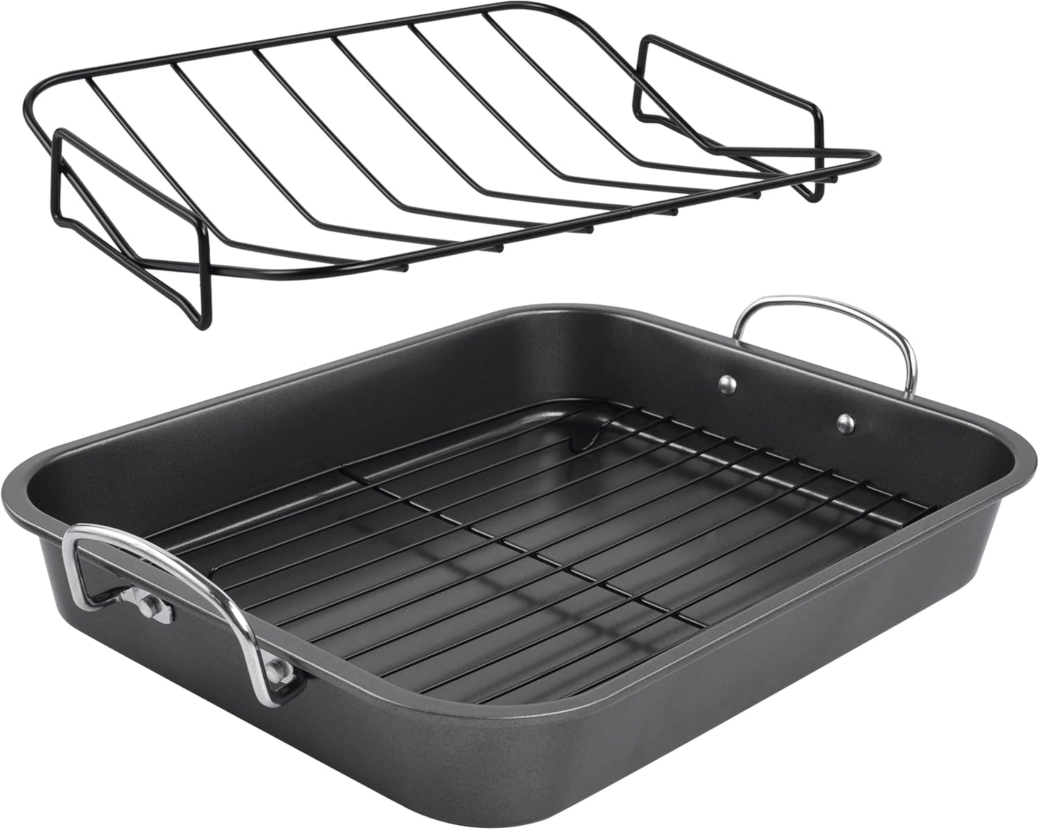 kitCom Nonstick Roasting Pan, Roaster with Rack - 16 Inch Rectangular Grill Suitable for Turkey, Roast Chicken, Ham, Dishwasher Safe (9.5QT)