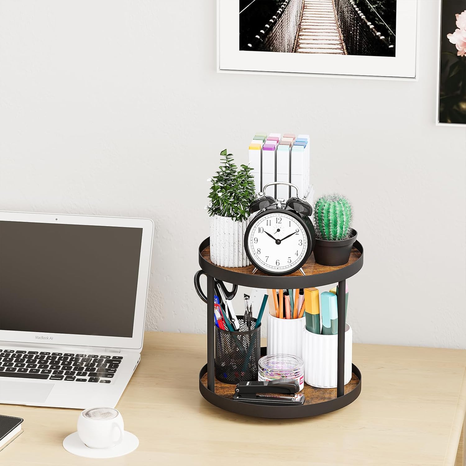 Giikin 2 Tier Lazy Susan Organizer, Two Tier Lazy Susan Turntable for Kitchen Countertop Spice Rack Organizer (Rustic Brown, 9.8" x 9.8" x 8.8")