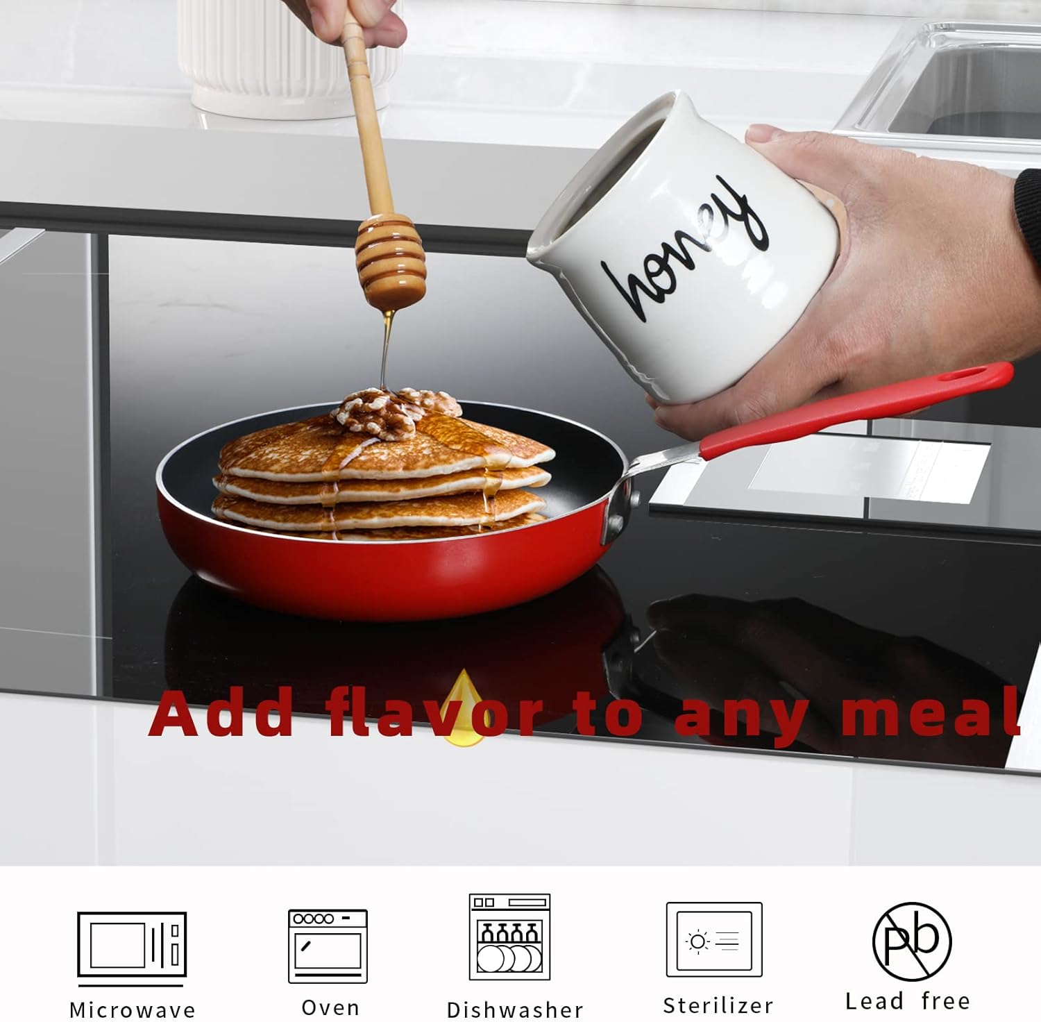 - CERAMIC MATERIAL: This honey jar is made of ceramic.The surface is smooth and translucent , which is easy to clean.It can be washed in the dishwasher
