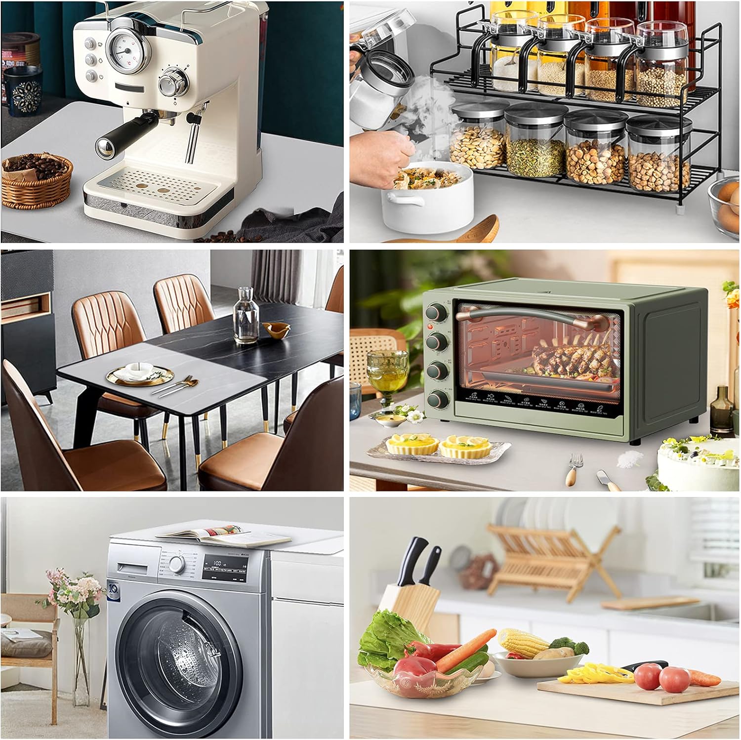- You Canβt Go Wrong with It: This placemat can solve multiple problems. Great for catching messes. Protect counters from spills, scratches, grease, coffee stains, or damage. Place hot items of all sizes directly on the mat without having to dig through the drawer for a hot pad and no more need for trivets. Reduce the noises made by appliances. No need to worry about items slipping off the countertop. Tools will keep in place. Even if you are rolling dough hard on it, the mat won't slide