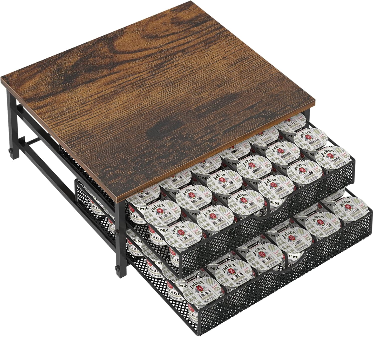 - 【Rustic and Sturdy Design】 : The wooden top of the coffee pod holder will firmly support your coffee machine, and is durable and effective in preventing deformation. The stylish rustic style coffee pod holder blends into your office setting and kitchen decoration to spruce up your space.