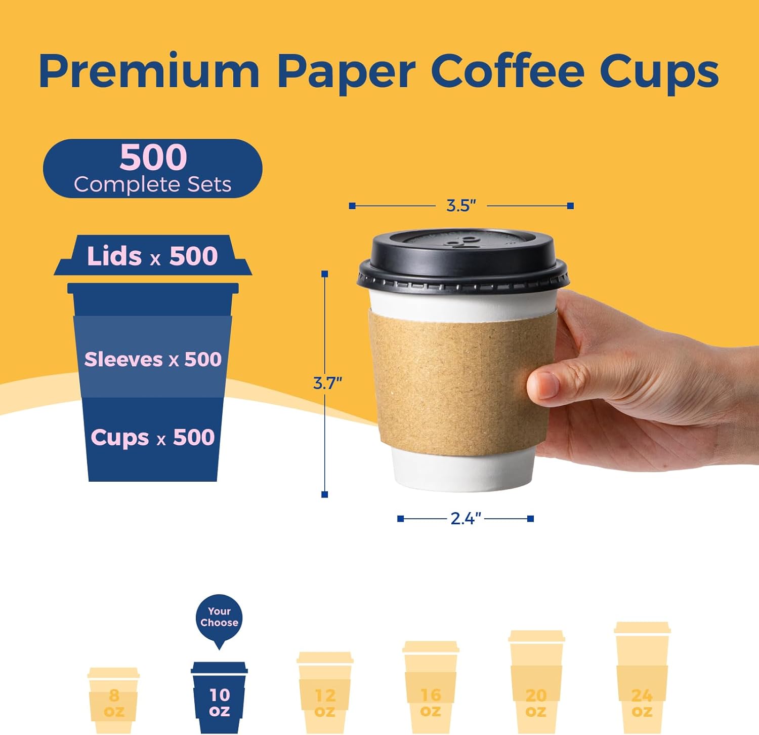 Fit Meal Prep 500 Pack 10 oz Disposable Coffee Cups with Lids, Sleeves, Leak-Proof To Go Coffee Cups with Lids, Durable Paper Cups for Hot Beverage, Home, Office, Party