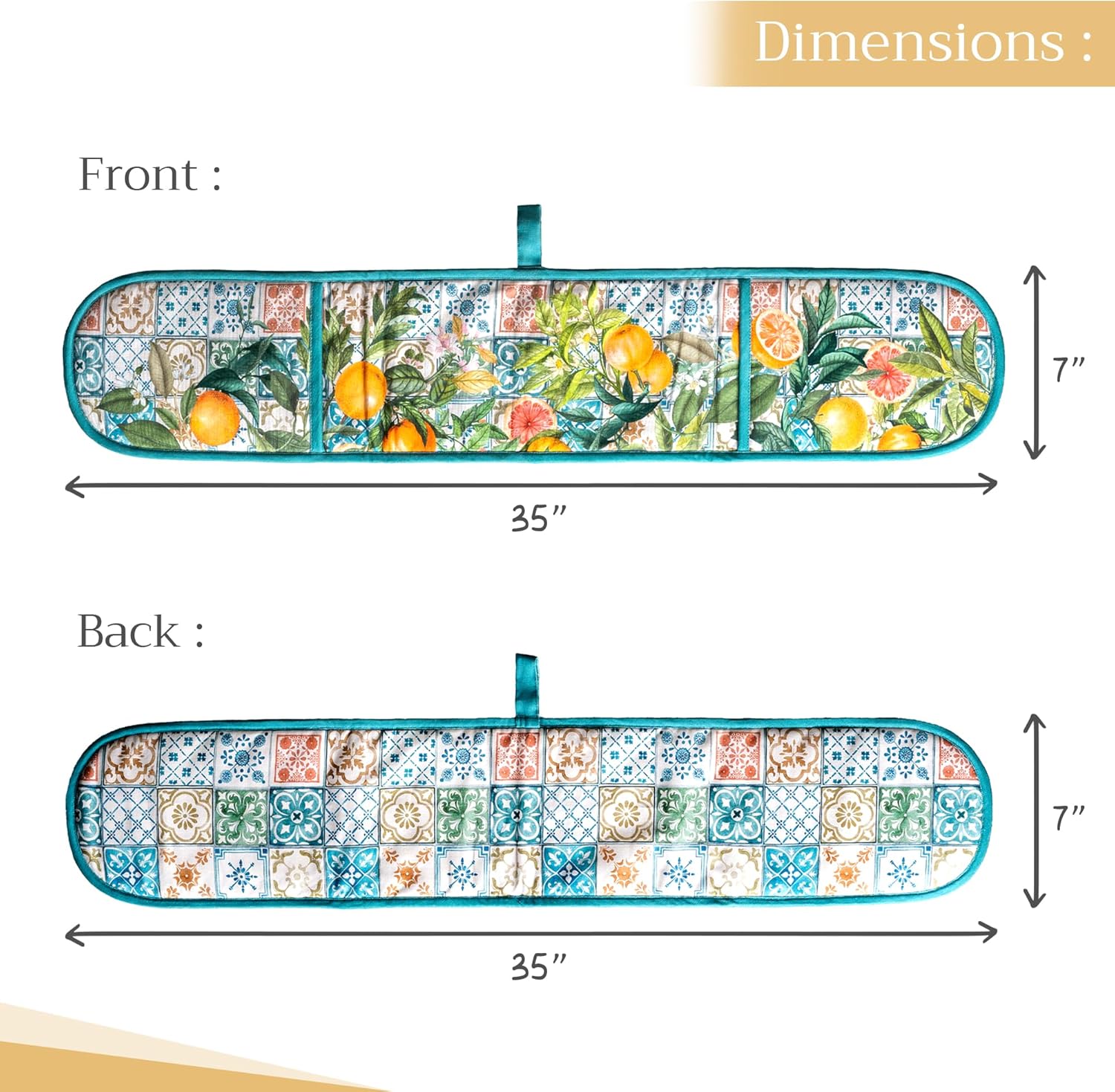 - Package includes: Includes 1 double oven mitt sized 7"x35". Perfect for handling hot cookware safely while adding a touch of European elegance to your kitchen. Designed in Europe and made in India with care
