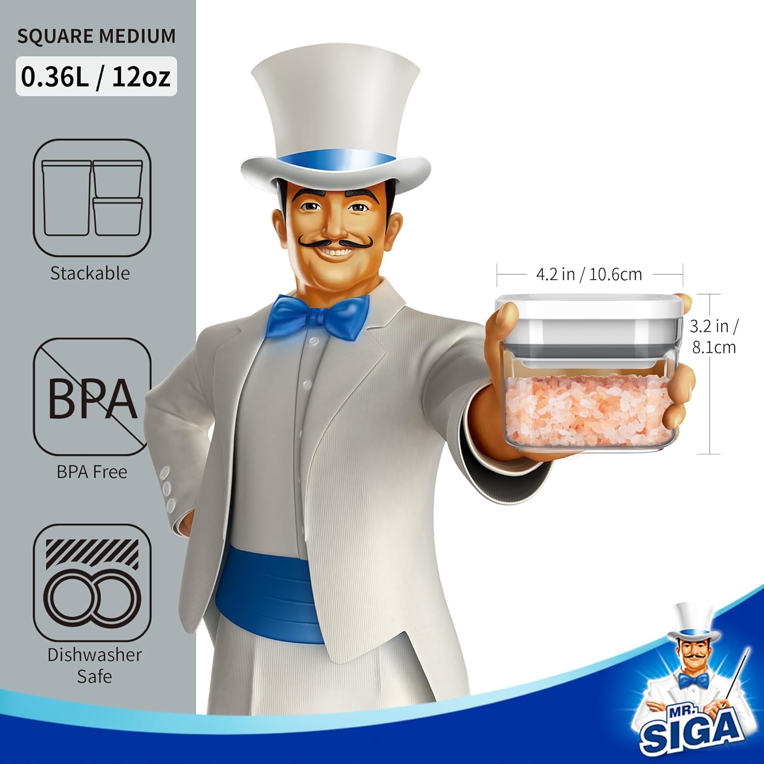- SPACE SAVING STACKABLE DESIGN: MR.SIGA stackable food storage containers allows maximum storage of your cabinet, keep your pantry cabinets well organized and tidy. It's rectangle shape is also much easier for you to grab and carry rather than the round ones.