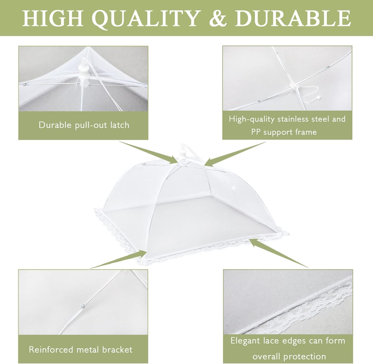 - [PERFECT FOR OUTDOOR PARTY] Suitable for all outdoor activities, such as garden parties, courtyard barbecues, picnics, camping, etc. Food covers also suitable for home use, such as food taken out of the oven to cool, and breakfast for the family. Keep those uninvited guests away from your food and enjoy every plate of clean and fresh food.