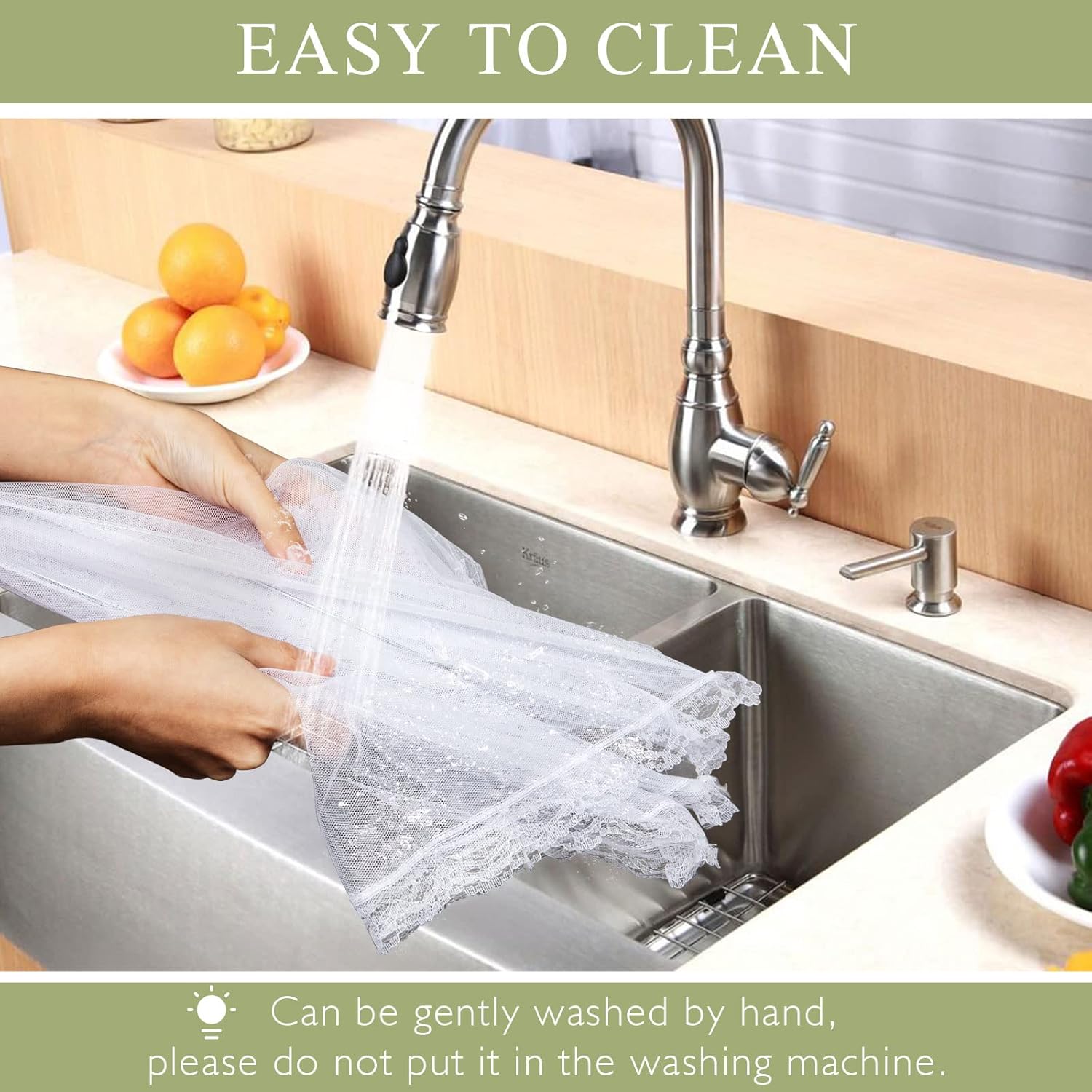 - [UPGRADE 1MM DENSE NET] This food covers for outside mesh uses an upgraded version of 1mm dense mesh, which provide superior protection against small flying insects.The elegant lace design at the bottom adds a touch of sophistication while effectively preventing bugs from reaching your food.