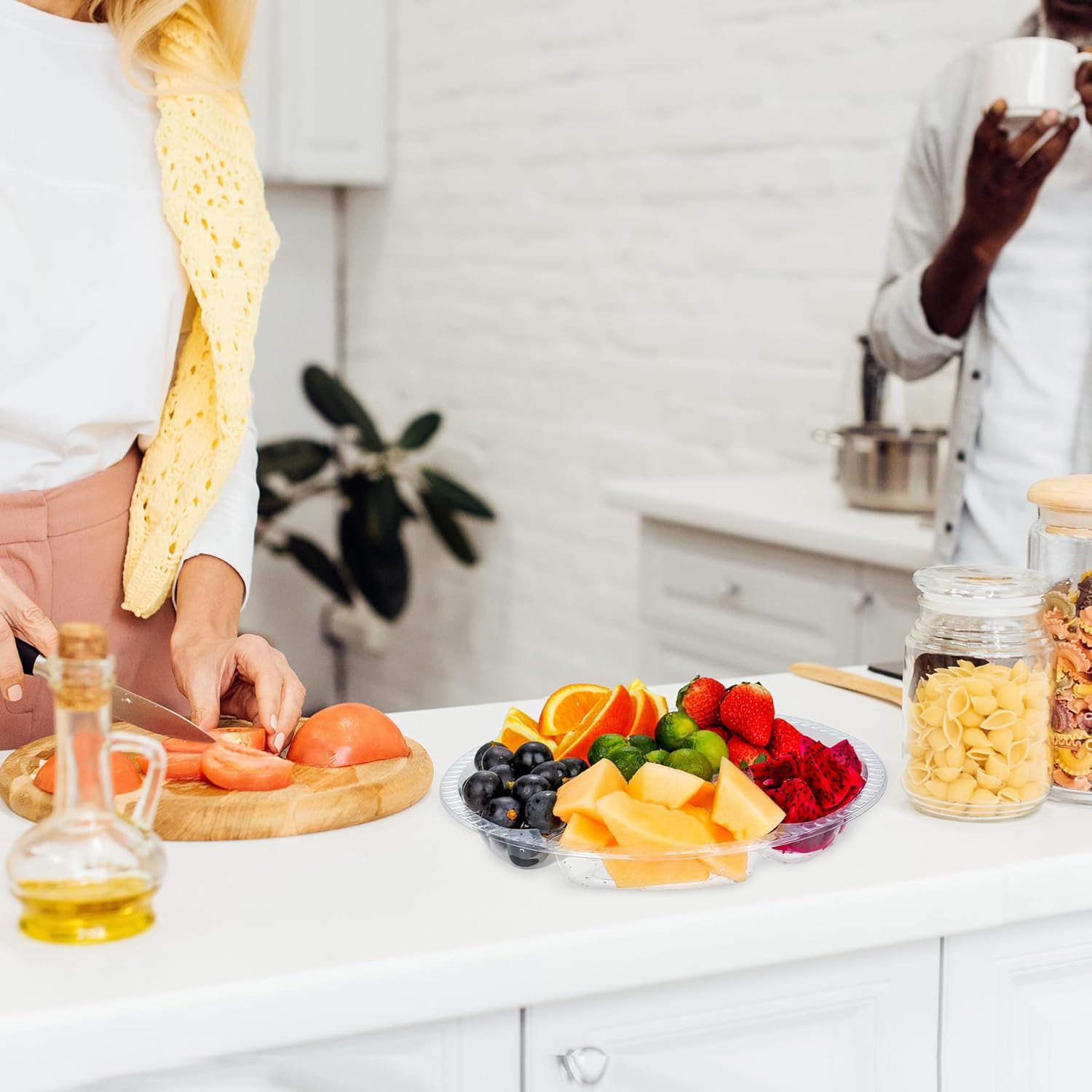 12 Pack Round Plastic Veggie Tray with Lid Fruit Tray 6 Divided Compartment Container Food Serving Dip Platter Reusable Catering Trays for Veggie Fruit Snack Party and Buffet Trays(Clear,10inch)
