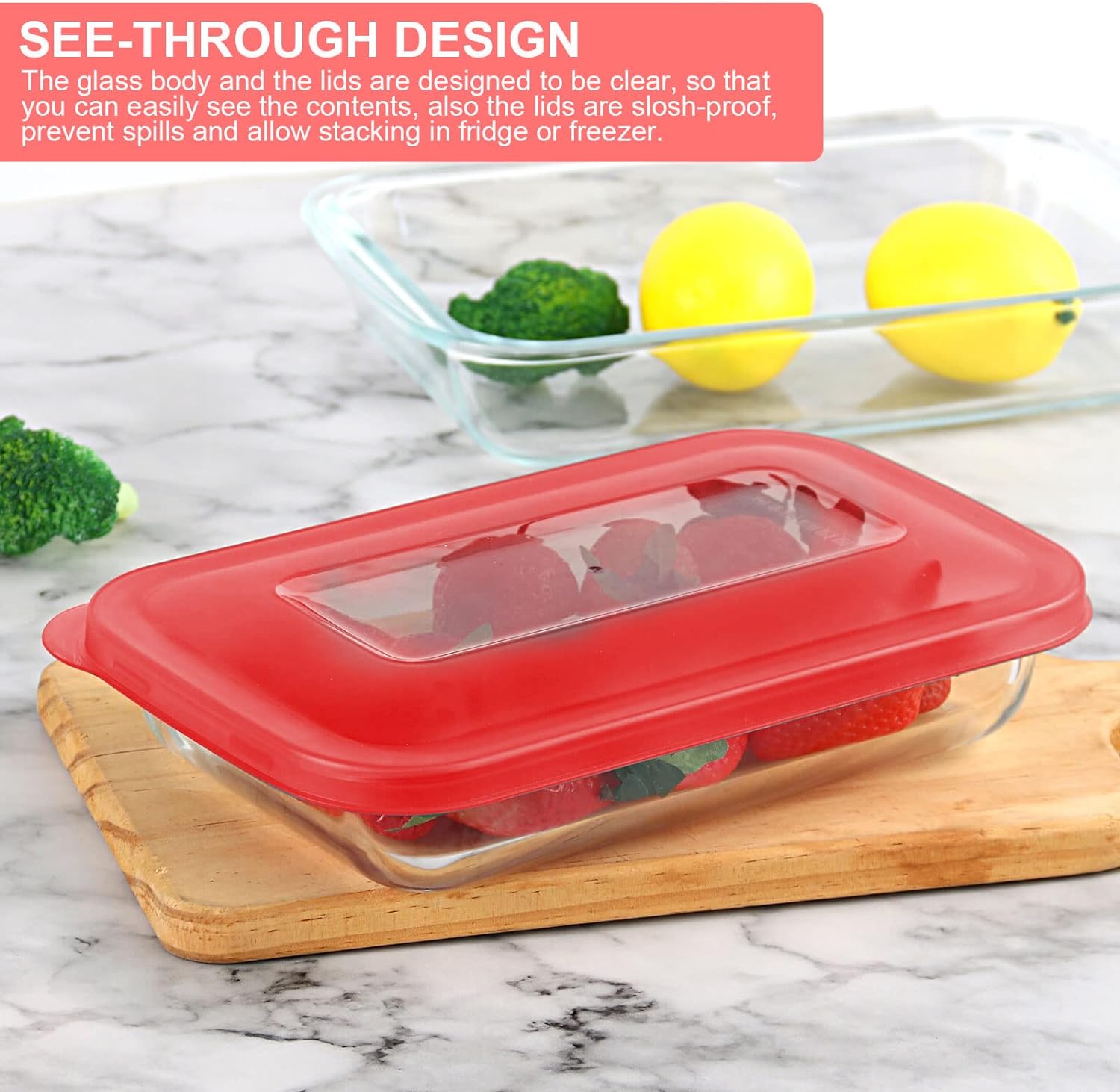 KOMUEE 8 Pieces Glass Baking Dish with Lids Rectangular Glass Baking Pan Bakeware Set with BPA Free Lids, Baking Pans for Lasagna, Leftovers, Cooking, Kitchen, Fridge-to-Oven, Red