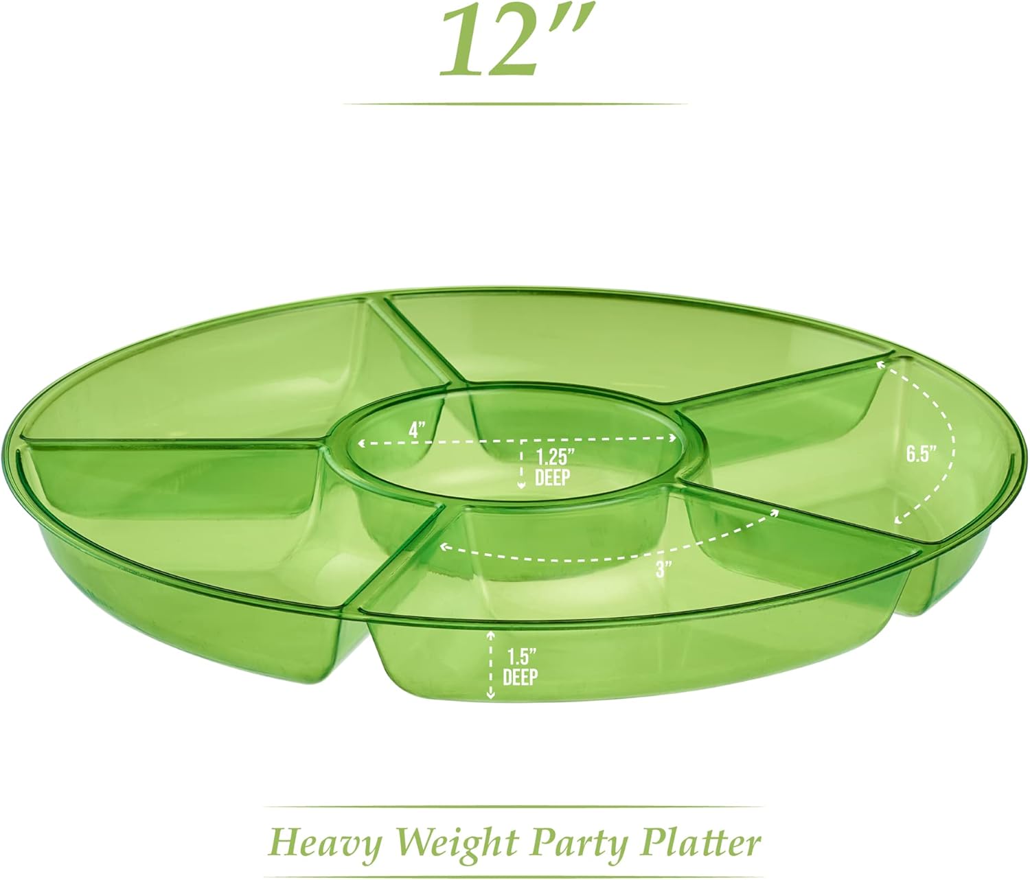 Plasticpro 6 Sectional Round Plastic Serving Tray/Platter (8, Green)