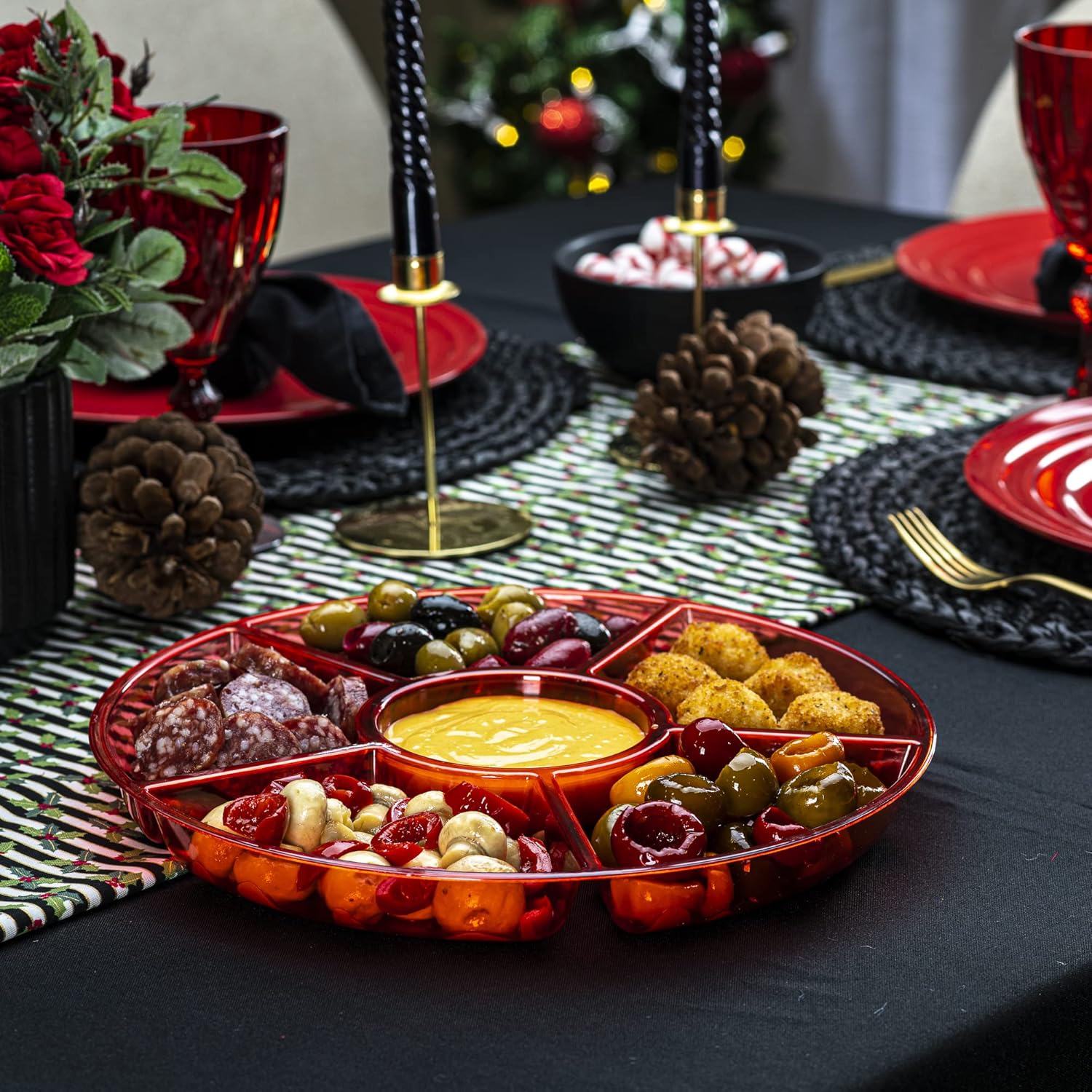 Plasticpro 6 Sectional Round Plastic Serving Tray/Platter (4, Red)
