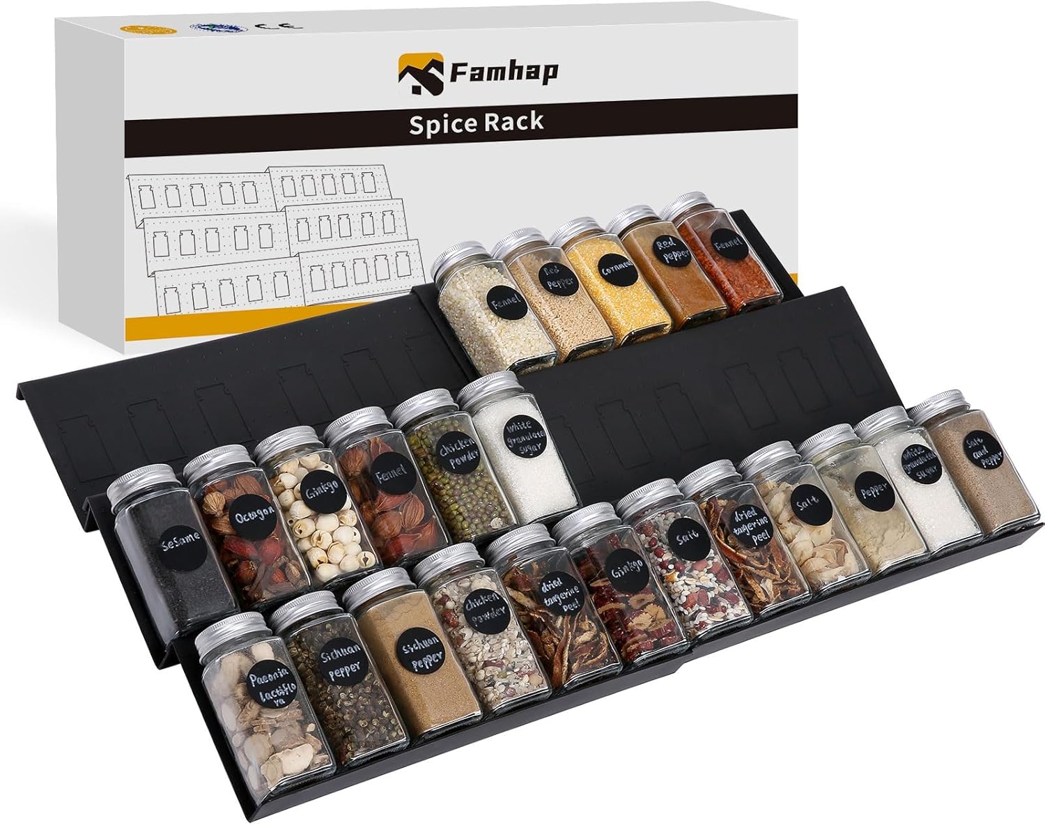 - 6PCS Spice Drawer Organizers: This spice drawer organizer set consists of 6 single slanted drawers that can hold up to 36 spice jars. The slanted design allows you to see all your spices at a glance, saving you time fumbling through the drawers.