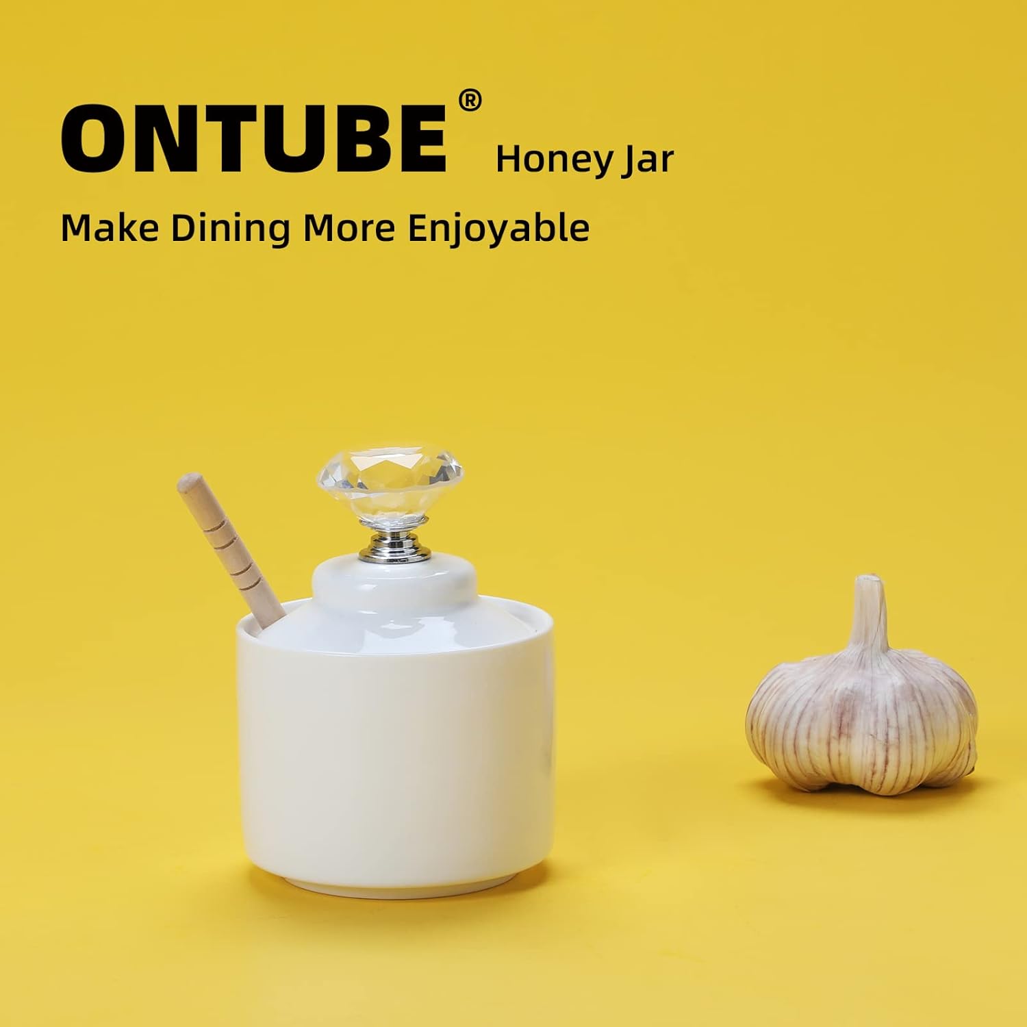 - CRYSTAL LID: This porcelain honey jar has this crystal lid, which provides two styles to choose from, it looks very high end atmosphere