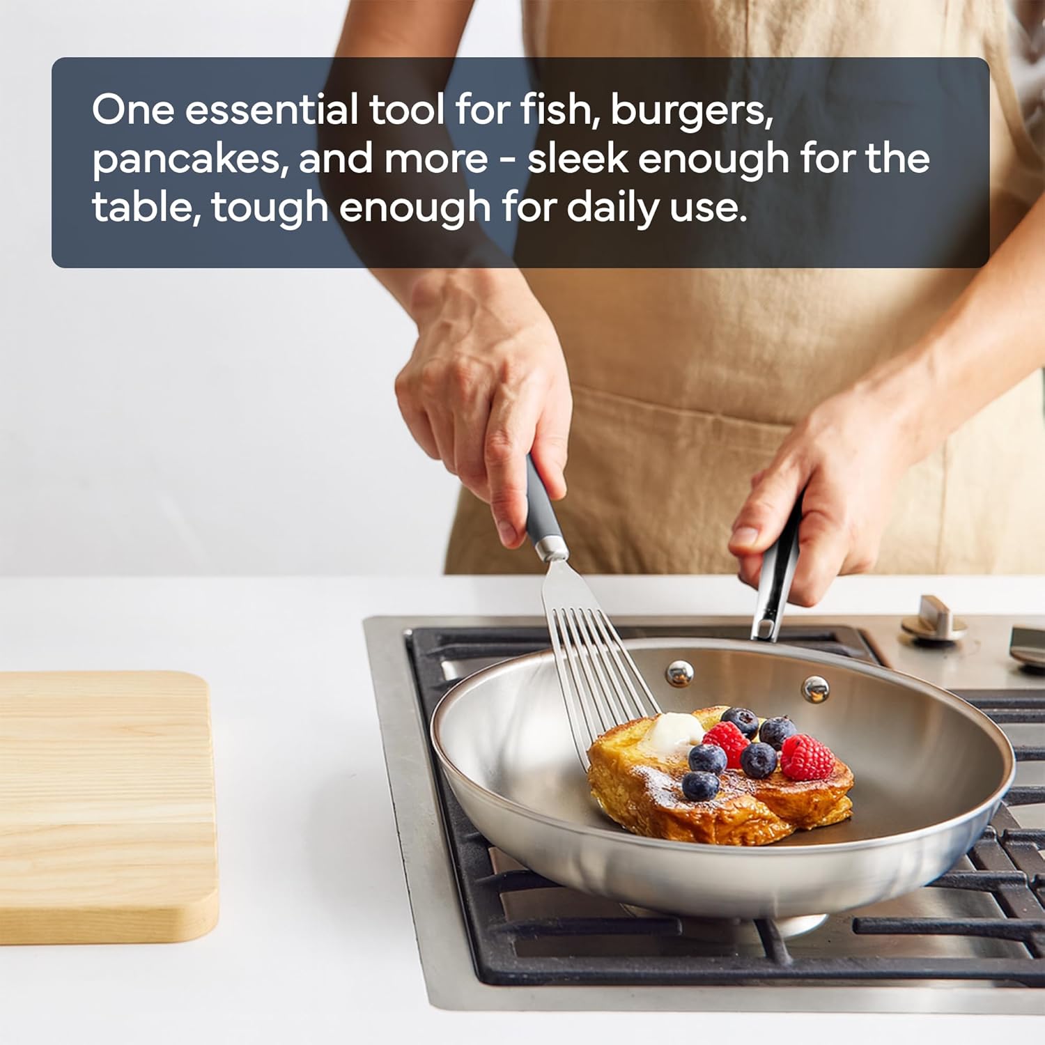 - PROFESSIONAL-GRADE FOR HOME COOKS: Meticulously crafted from premium material for unparalleled durability and resilience to high temperatures without getting damaged. Durable enough for restaurants, but designed to make flipping while frying, sautéing, and grilling, at home easier than ever before.