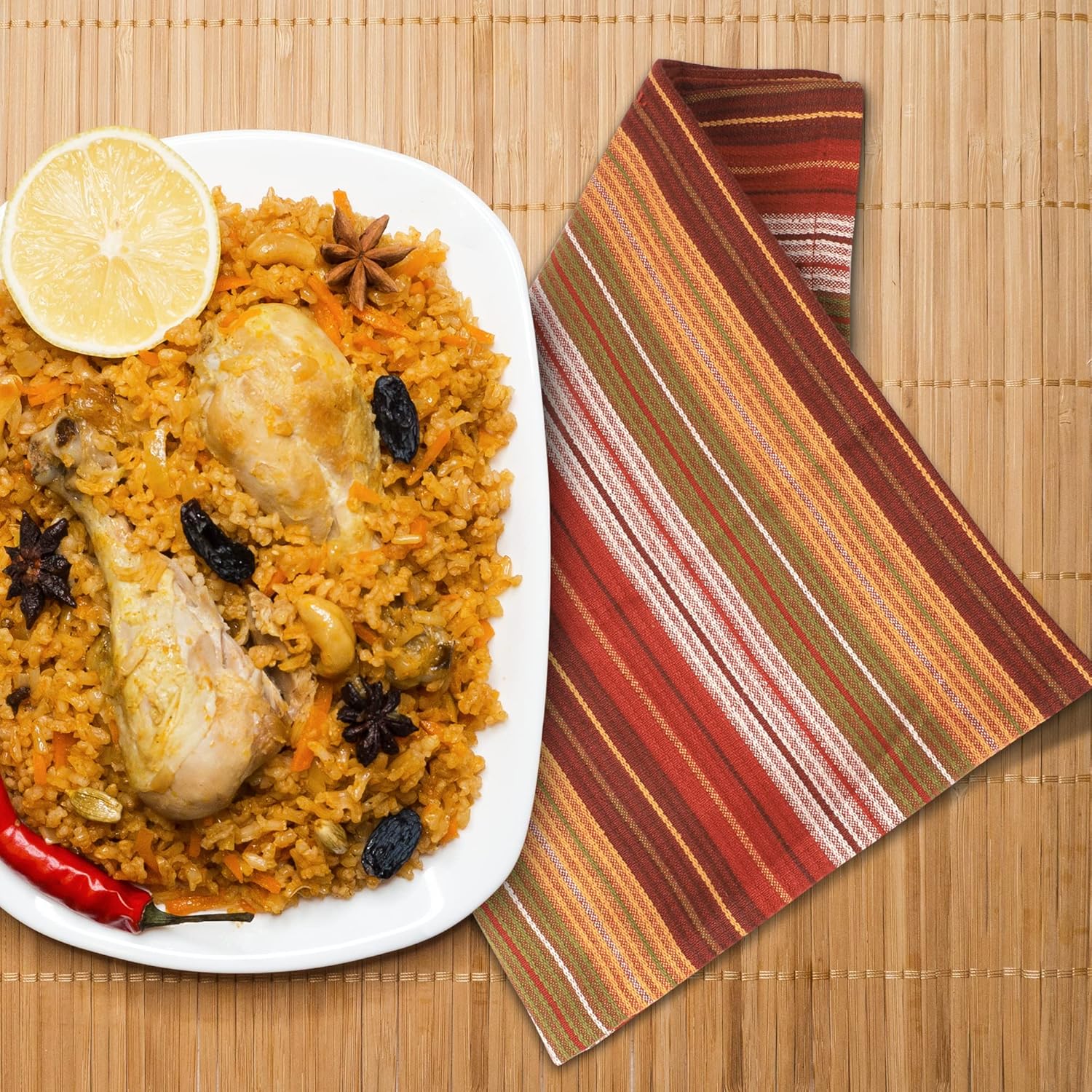 - MACHINE WASHABLE : Easy to maintain, these durable napkins and towels can be machine washed multiple times in cold water, without having their color fade.