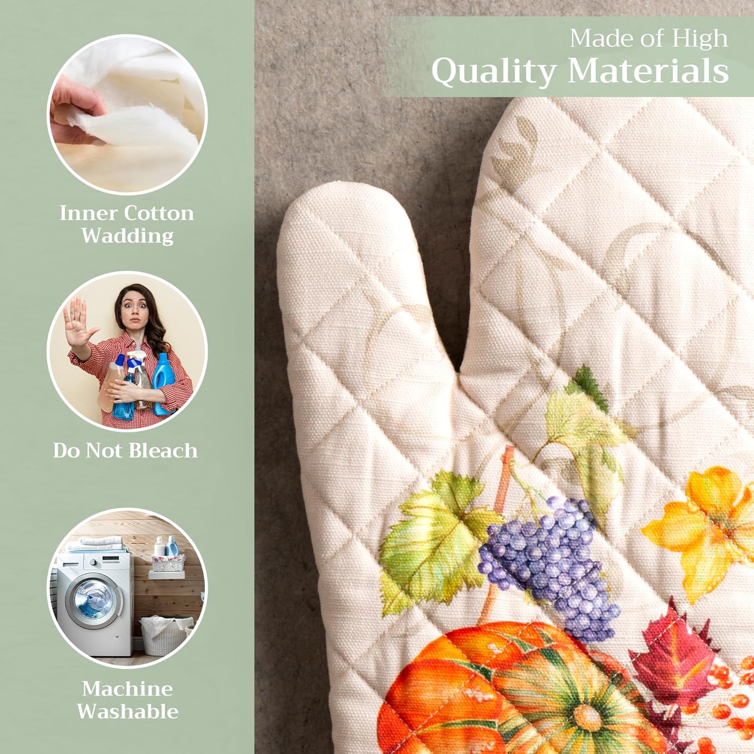 - 100% Quilted cotton: Crafted from thick, durable quilted cotton, this heat resistant oven mitt provides a soft feel, safe handling, and lasting performance. A must-have kitchen accessory for everyday cooking, roasting, or baking tasks