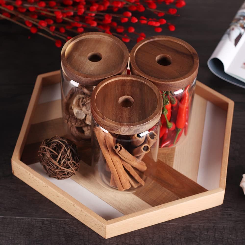 - 【MATERIAL】: This glass canister is made from clear high-grade borosilicate glass + natural acacia wood lids. Environmental friendly ,non-toxic,freezable,resistant to corrosion and high temperature.