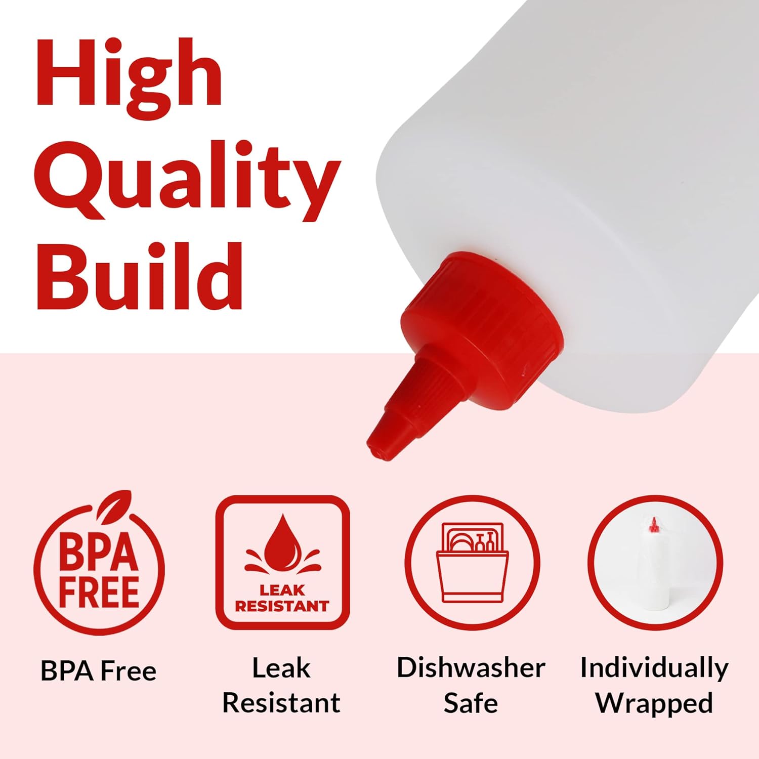 Reli. Plastic Squeeze Bottles, 32 oz. | 4 Pack | Condiment Squeeze Bottles for Sauces | Clear w/Red Twist Cap | 32 Ounce Hot Sauce, Ketchup | Condiments, Olive Oil, Liquids