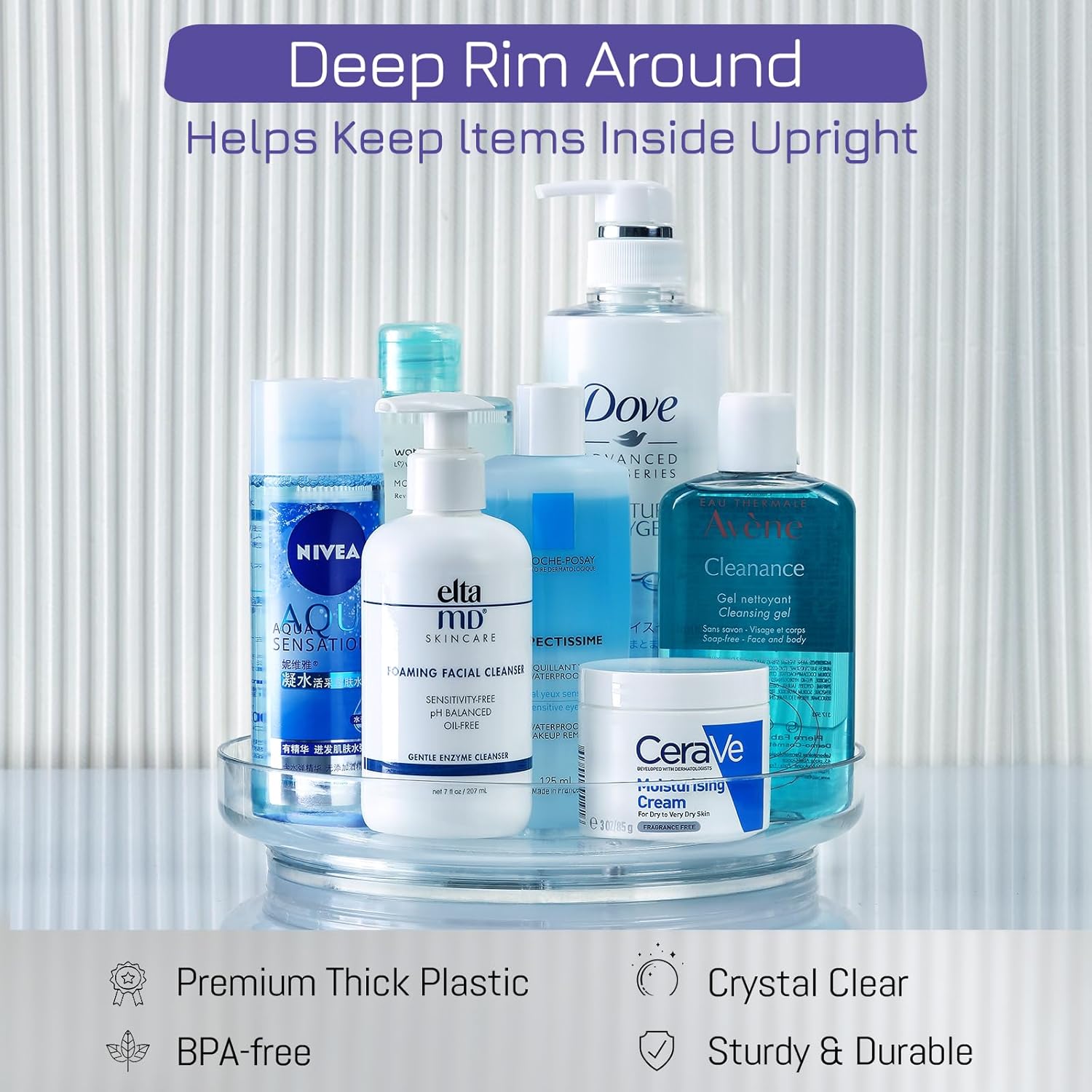 - [ Stable Structure ] - These clear rotating lazy susans are made of BPA-free plastic which are also crystal clear and sturdy. Hand wash recommended and dry completely.