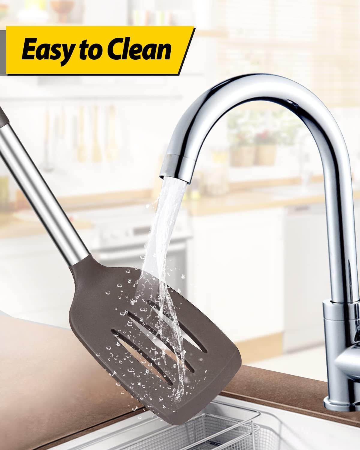 - Thoughtful Design : The good-quality 18/8 stainless steel keeps you away from the trouble of kitchen utensils rusting or breaking; This anti-scald silicone handle is not easy to conduct heat and is more comfortable to hold than traditional utensils