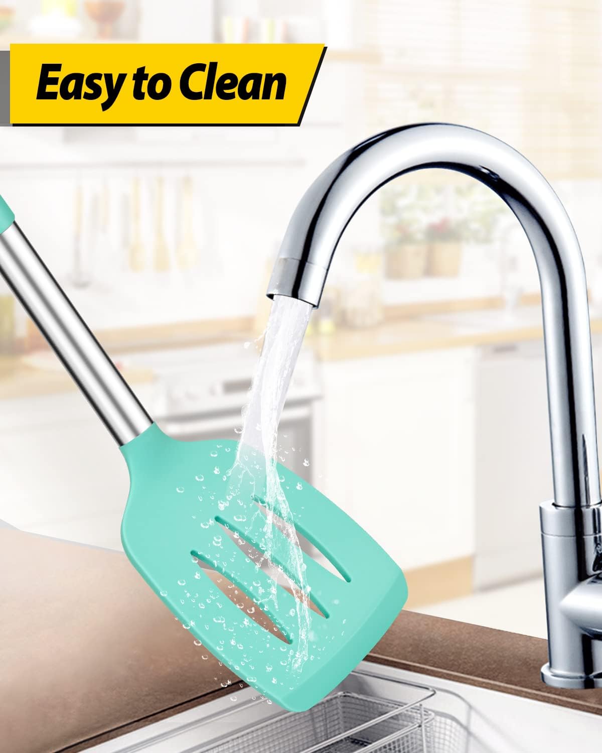 - More Safe and Healthy : Our silicone spatulas are made of food-grade silicone, free of BPA;Even at high temperatures, there is no need to worry about melting or deforming;And the soft silicone head won't scratch the coating, it can better protect your pot