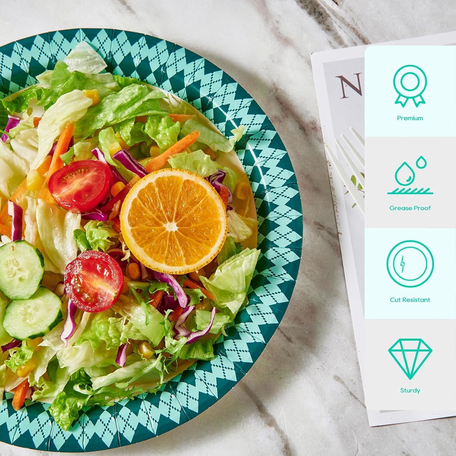 - Everyday disposable paper plates Perfect for dinner parties summer picnics, decorative paper plates with bluish green pattern diamonds for a variety of themed parties and events
