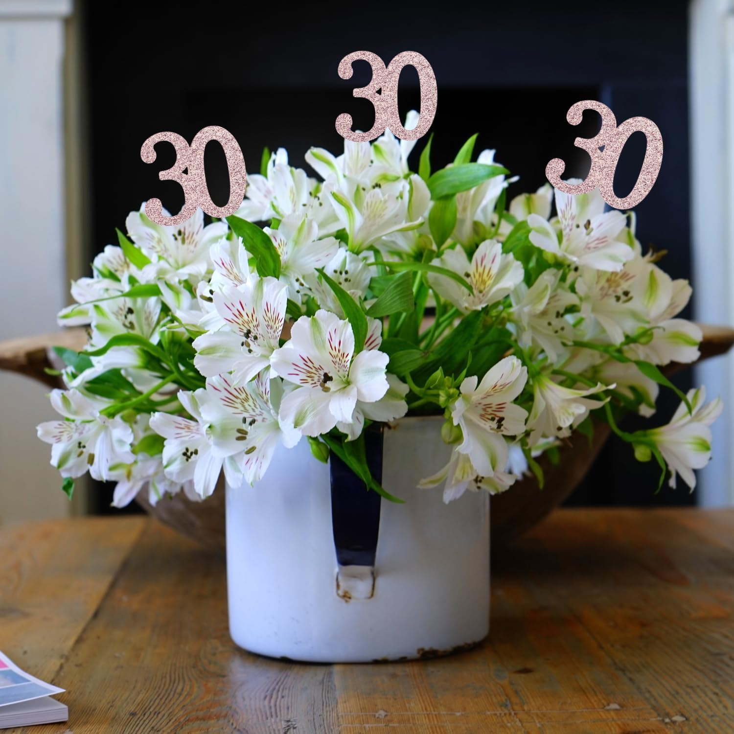 10-Pack Double Sided Glitter 30th Birthday Centerpiece Anniversary Centerpiece Sticks, Number 30 Table Topper Cake Topper for 30th Birthday Anniversary Table Party Decorations (Double Sided rose gold)