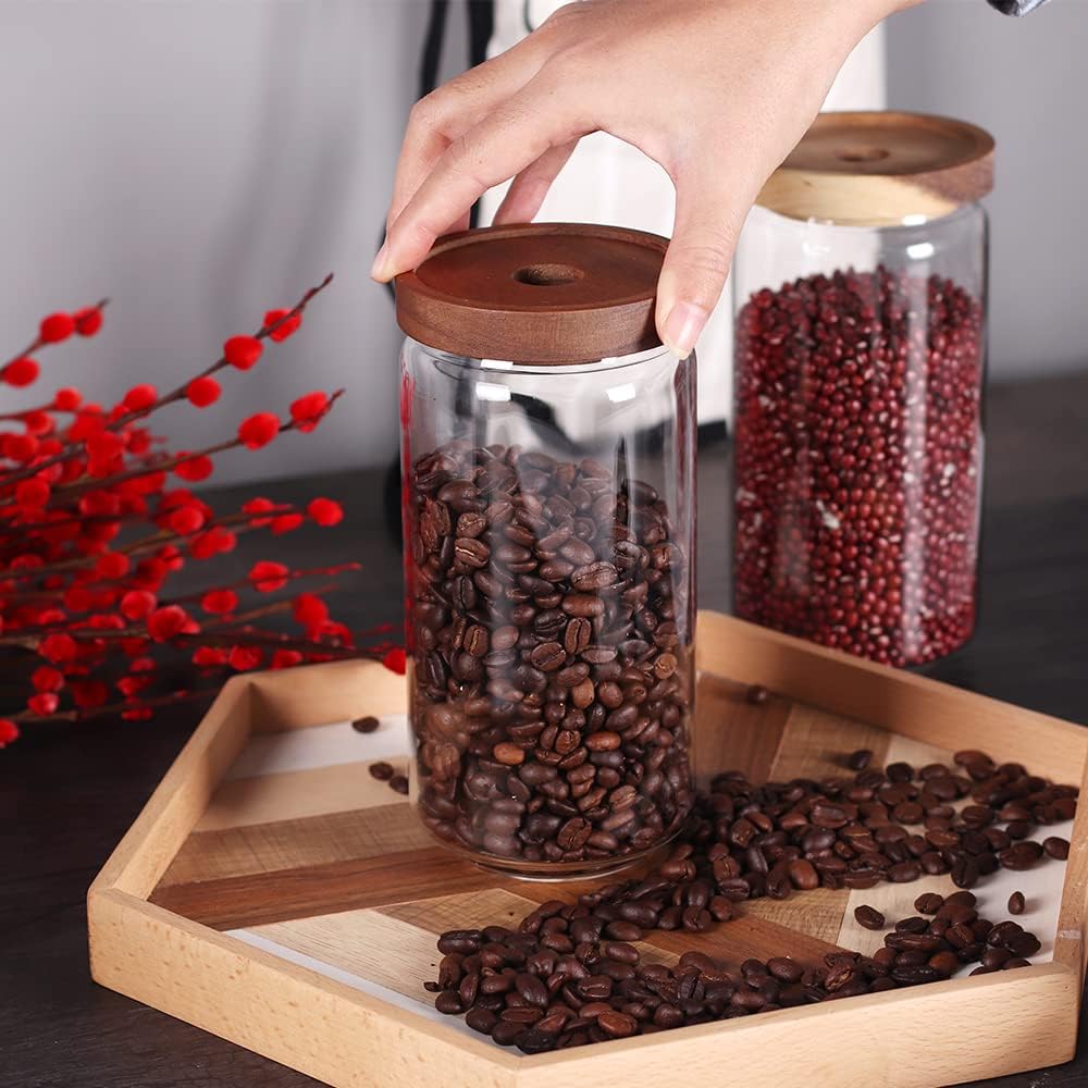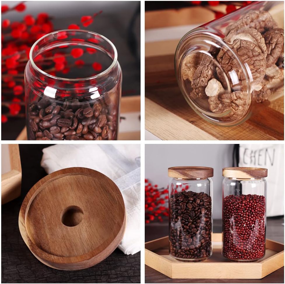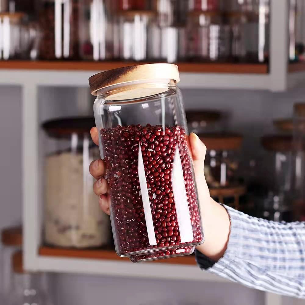 SAIOOL Home Borosilicate Glass Kitchen jars/Canisters with Acacia Wood Airtight Lid Set-2 Pack 30Oz/900ml,Minimalist Preprinted Farmhouse Style. White Matte Sticker Black Text.
