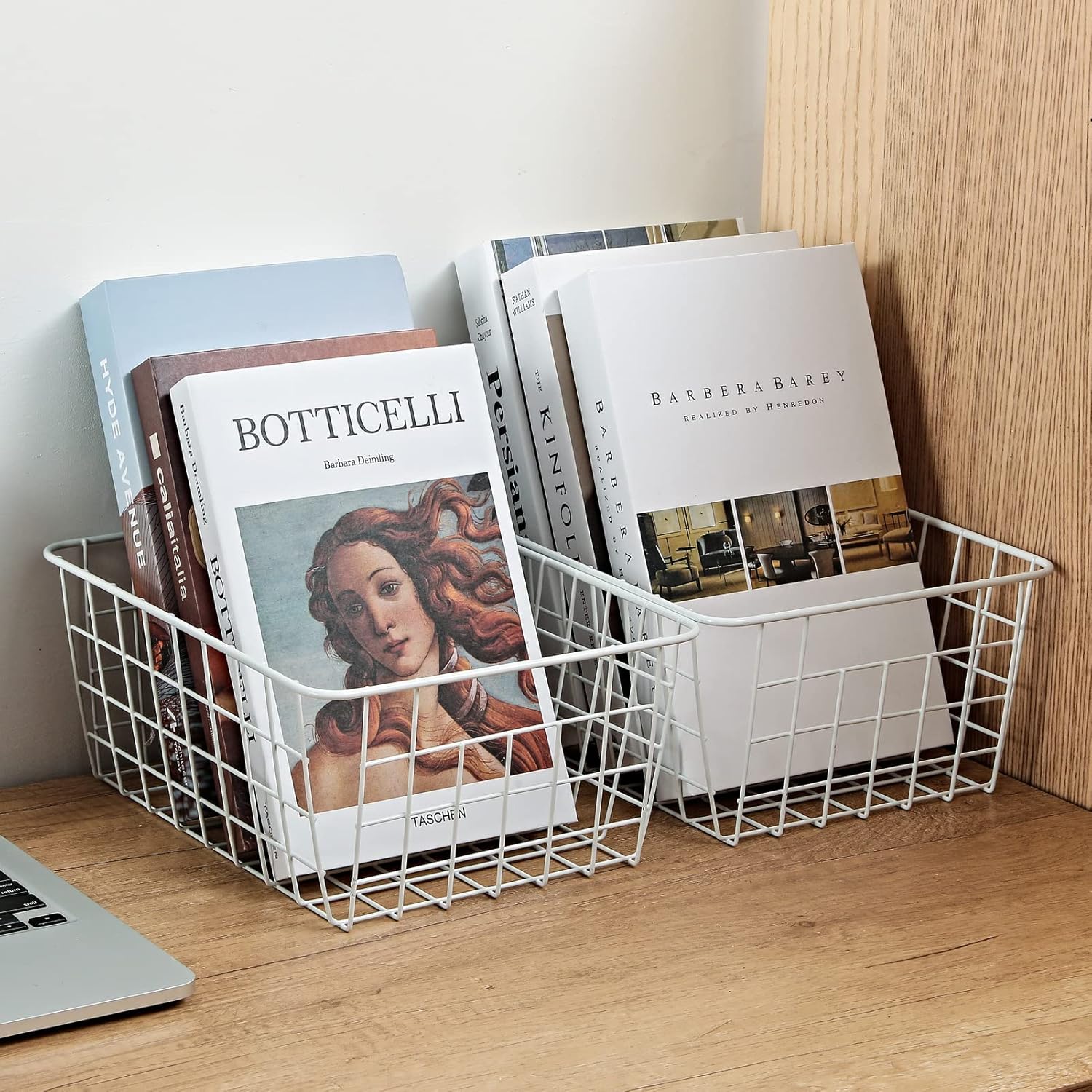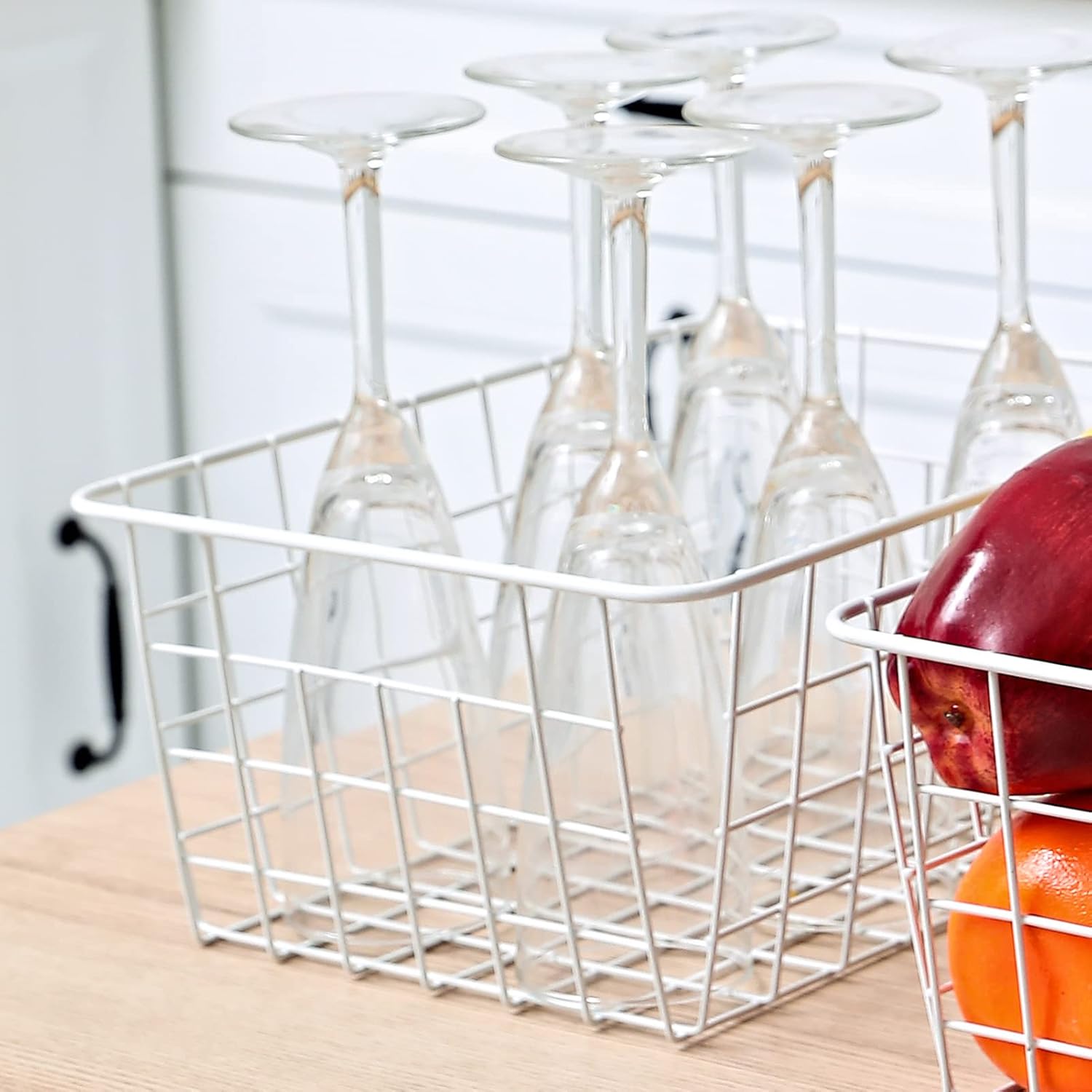 - White wire baskets are made of sturdy steel with coated, the measurements of single basket is 8.75"W x 11"L x 4.8"H, small bins great for organizing small items in your freezer or even your pantry shelf.