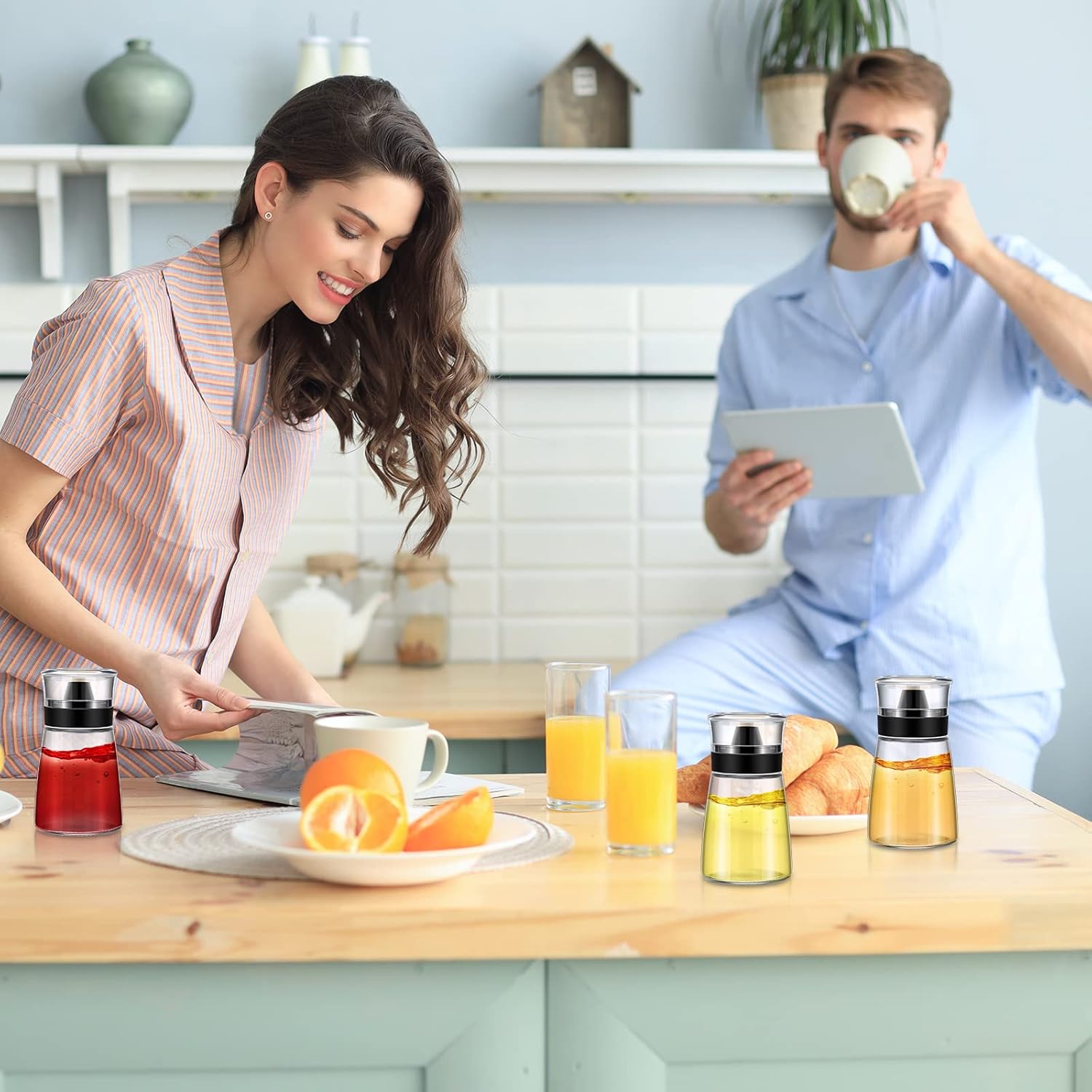 - Large Storage Room: Each oil and vinegar bottle measures 2.64 x 2.64 x 4.72 inches/ 6.7 x 6.7 x 12 cm, and the capacity is 5.4 oz/ 160 ml, adequate size to meet your daily use easily, just use with confidence.