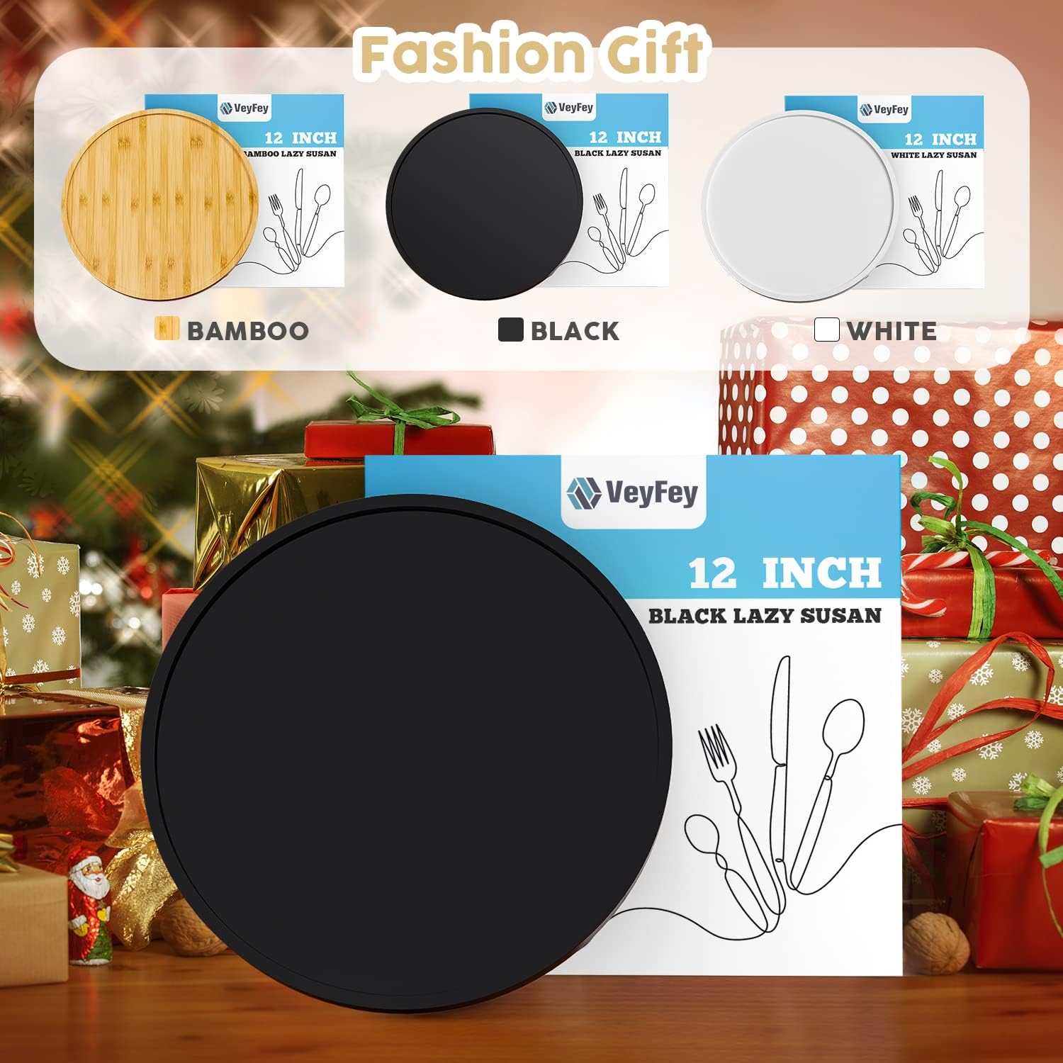 Lazy Susan for Table, 12 Inch Non-Skid Bamboo Turntable Organizer for Salt Pepper Spices and Olive Oil Next to Stove, Wooden Rotating Tray for Kitchen Countertop Organizer Black