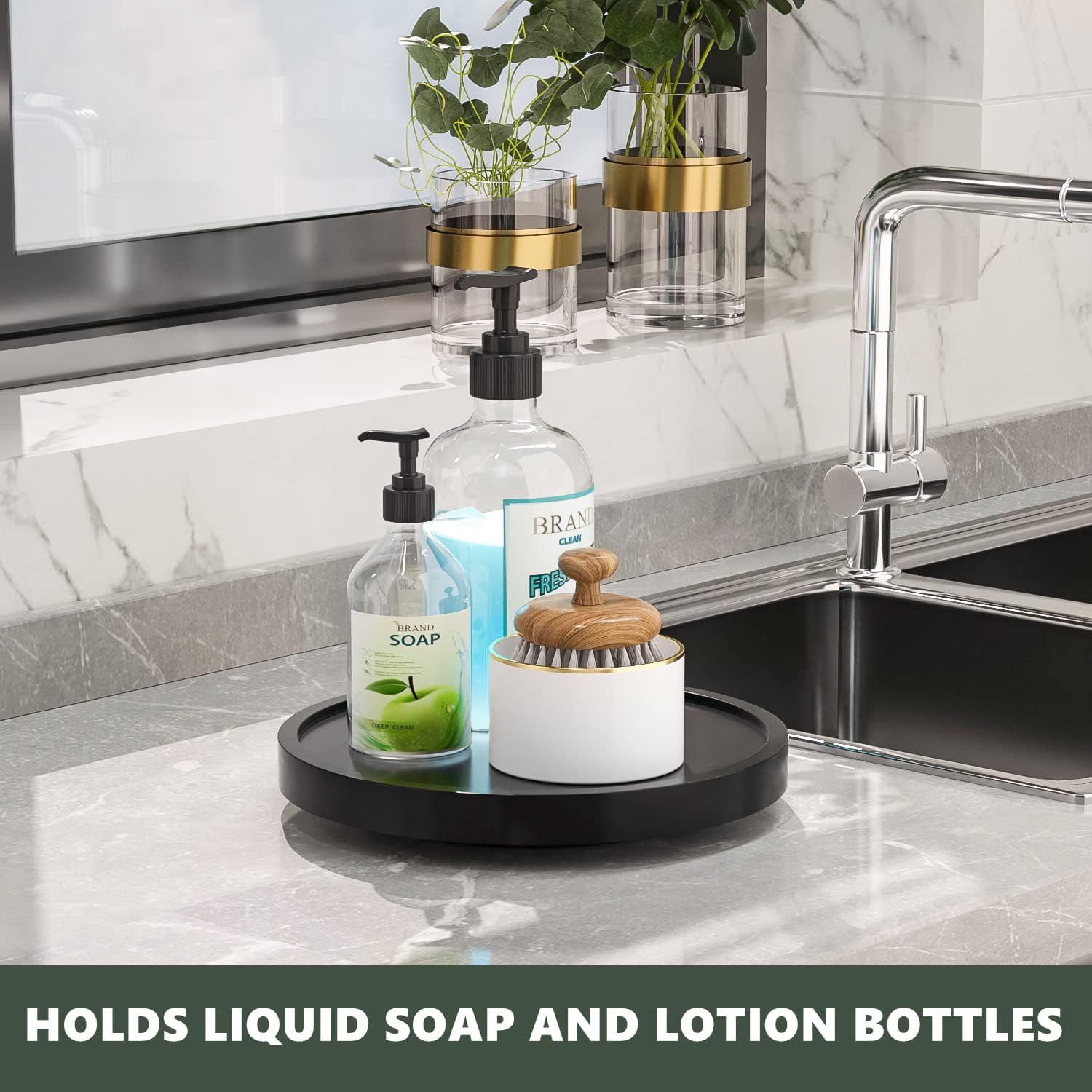 Turntable Vanity Tray 9 Inch for Perfume Candle, Bamboo Kitchen Sink Countertop Organizer for Keep Glass, Sponge and Soap Bathroom Countertop Organizer Black