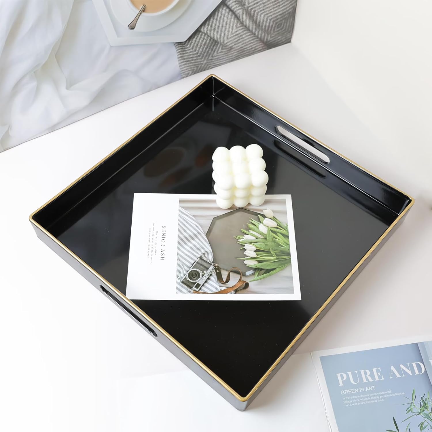 - Unique: Beautiful decorating trays with a glossy finish, giving them unique look appeal that adds to the home's charm. The organizer tray may also be used as a storage bin for small items like keys or TV remotes
