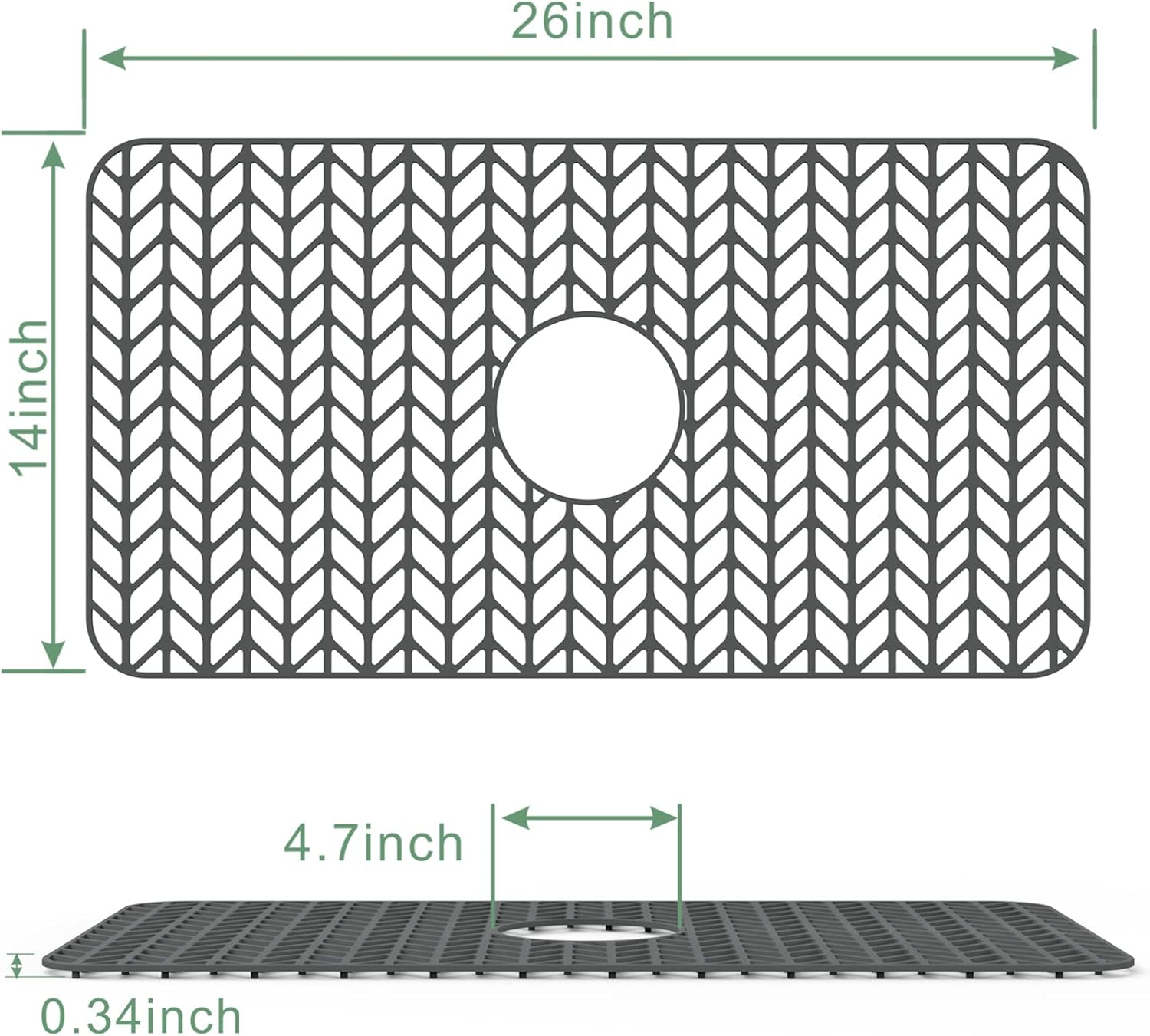 Silicone Protectors for Kitchen Sink, GUUKIN 26''x 14'' Sink Mat Grid for Bottom of Farmhouse Stainless Steel Porcelain with Center Drain (Grey)
