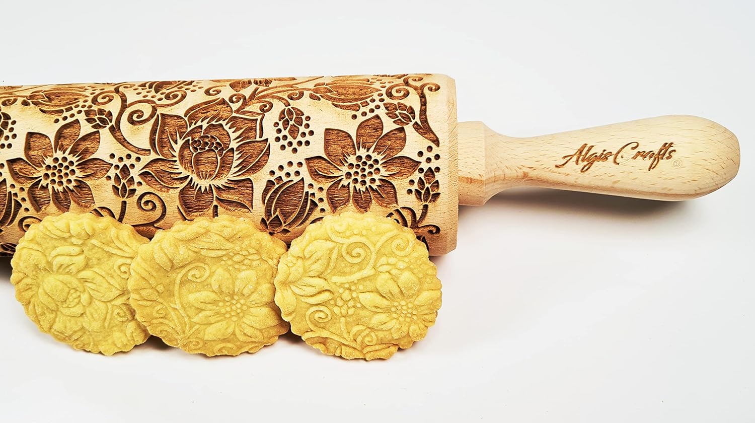- Handcrafted in Europe, the beautiful LOTUS pattern Engraved Rolling Pin features deep, clearly defined floral emboss rolling pin engravings to create stunning home-baked goods, crafts & pottery!