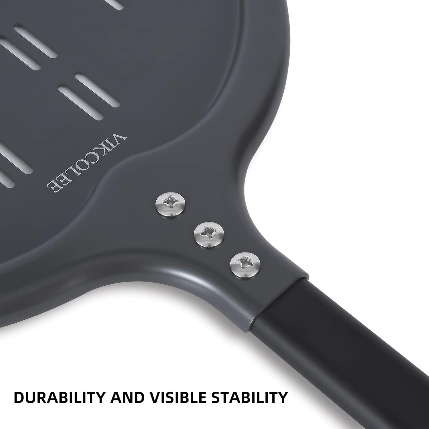 - 【SUPERIOR MATERIAL】This pizza turning peel is made from light and durable anodized aluminum, it protects each pizza skin surface from oxidation. Not only resistant to high temperatures but also wear resistant.