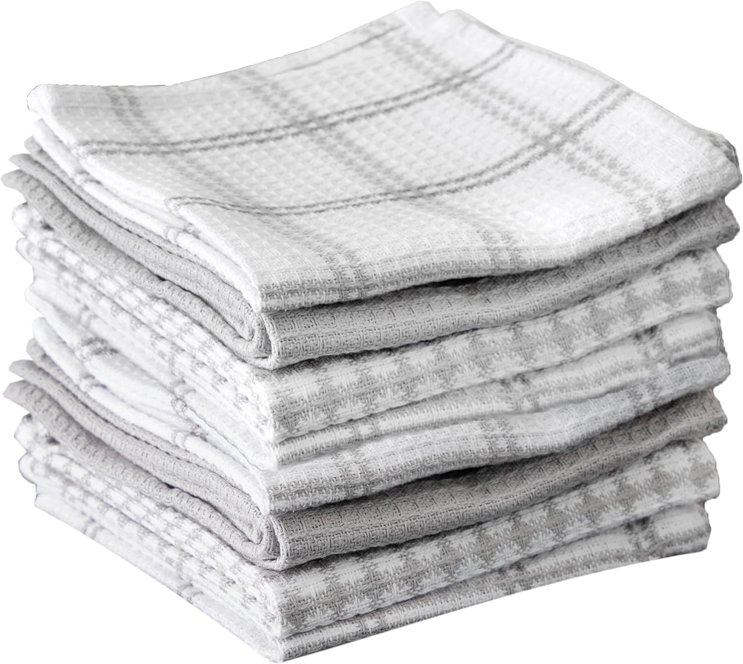 T-fal Premium Waffle Dish Cloths: Highly Absorbent, Super Soft Long Lasting - 100% Cotton, 12"x13" Towel for Cleaning & Drying, (8-Pack), Gray