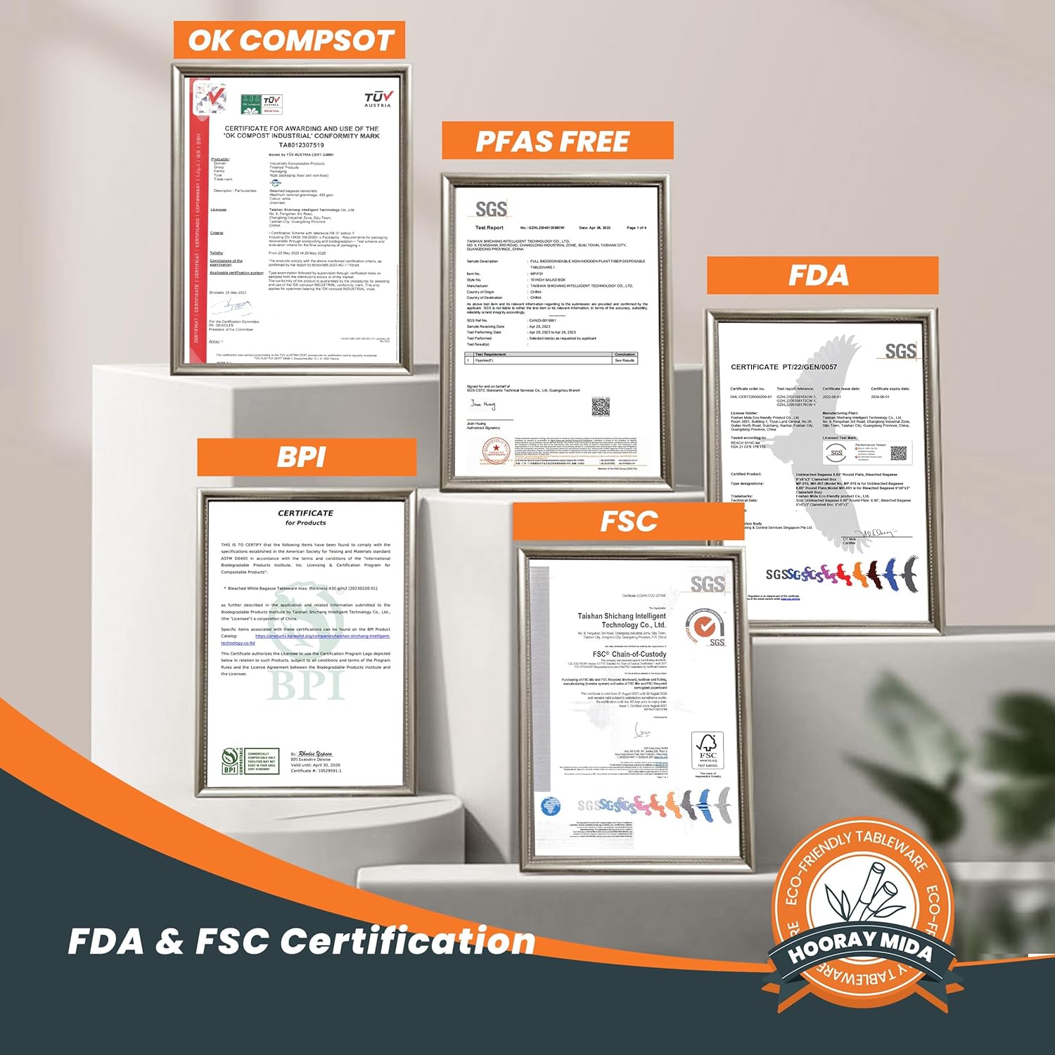 - 100% Compostable: These Hooray Mida paper plates are 100% compostable, making them environmentally friendly. After use, they can be easily decomposed and converted into natural organic matter.