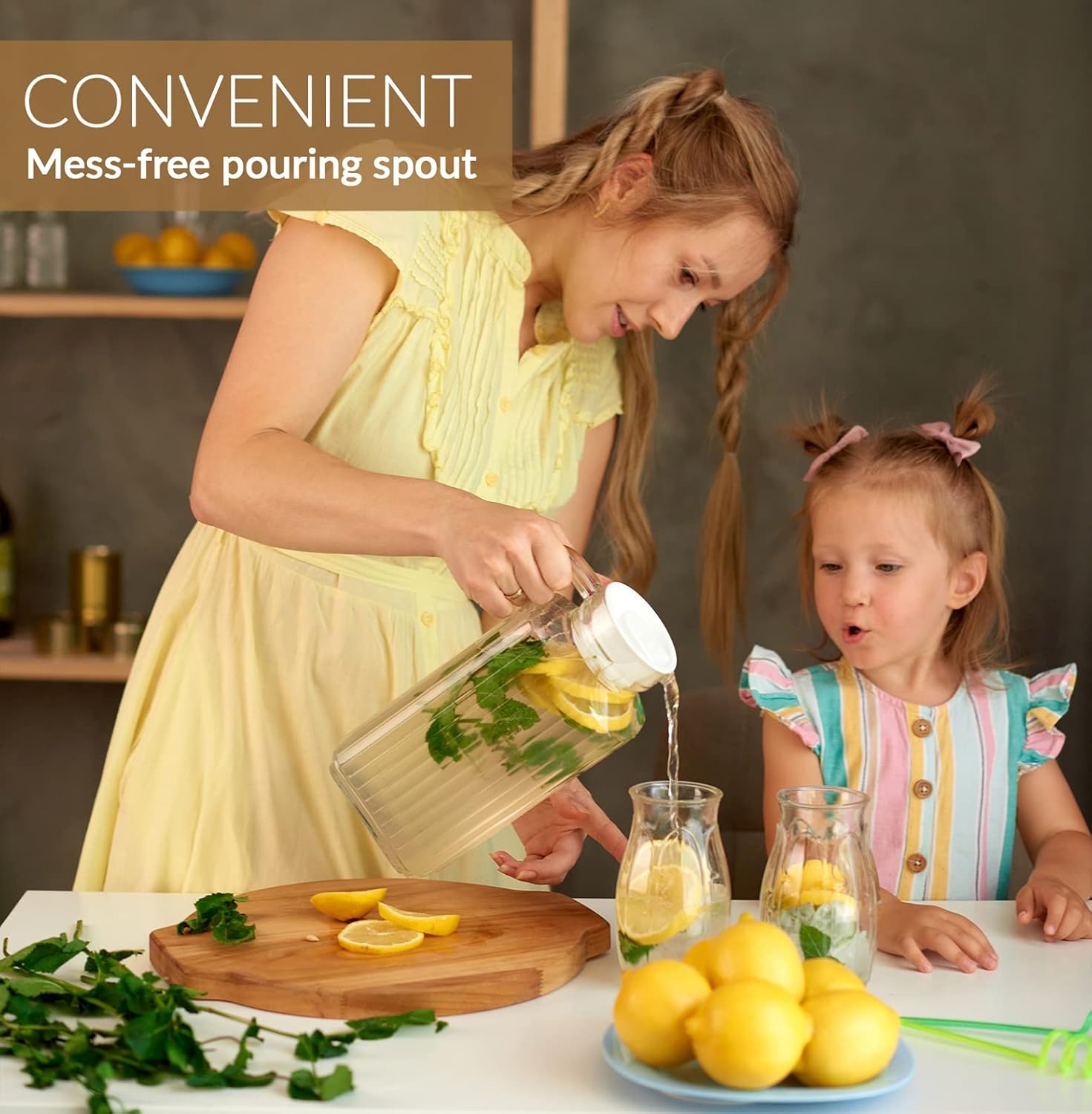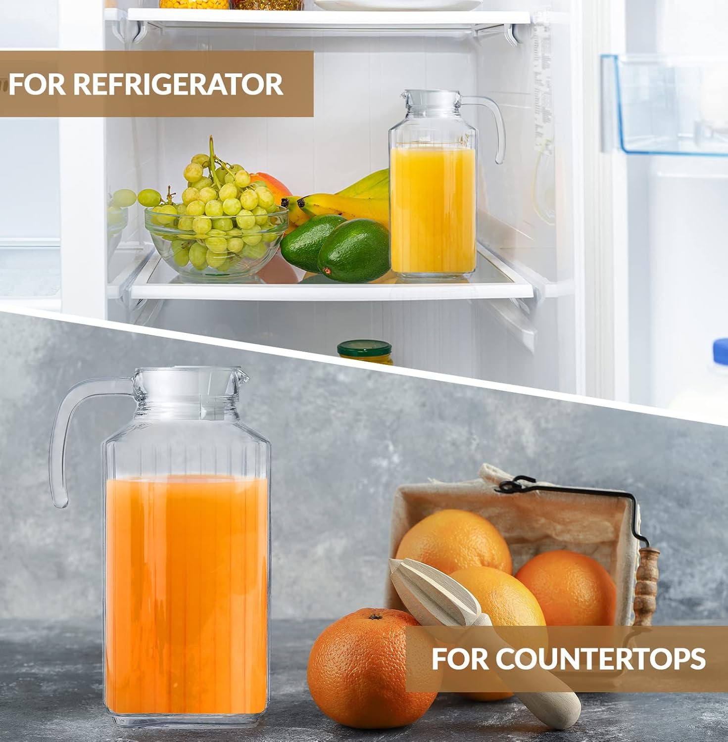 - This set includes 2 x 55Oz large pitchers perfect for refrigerator or countertops.