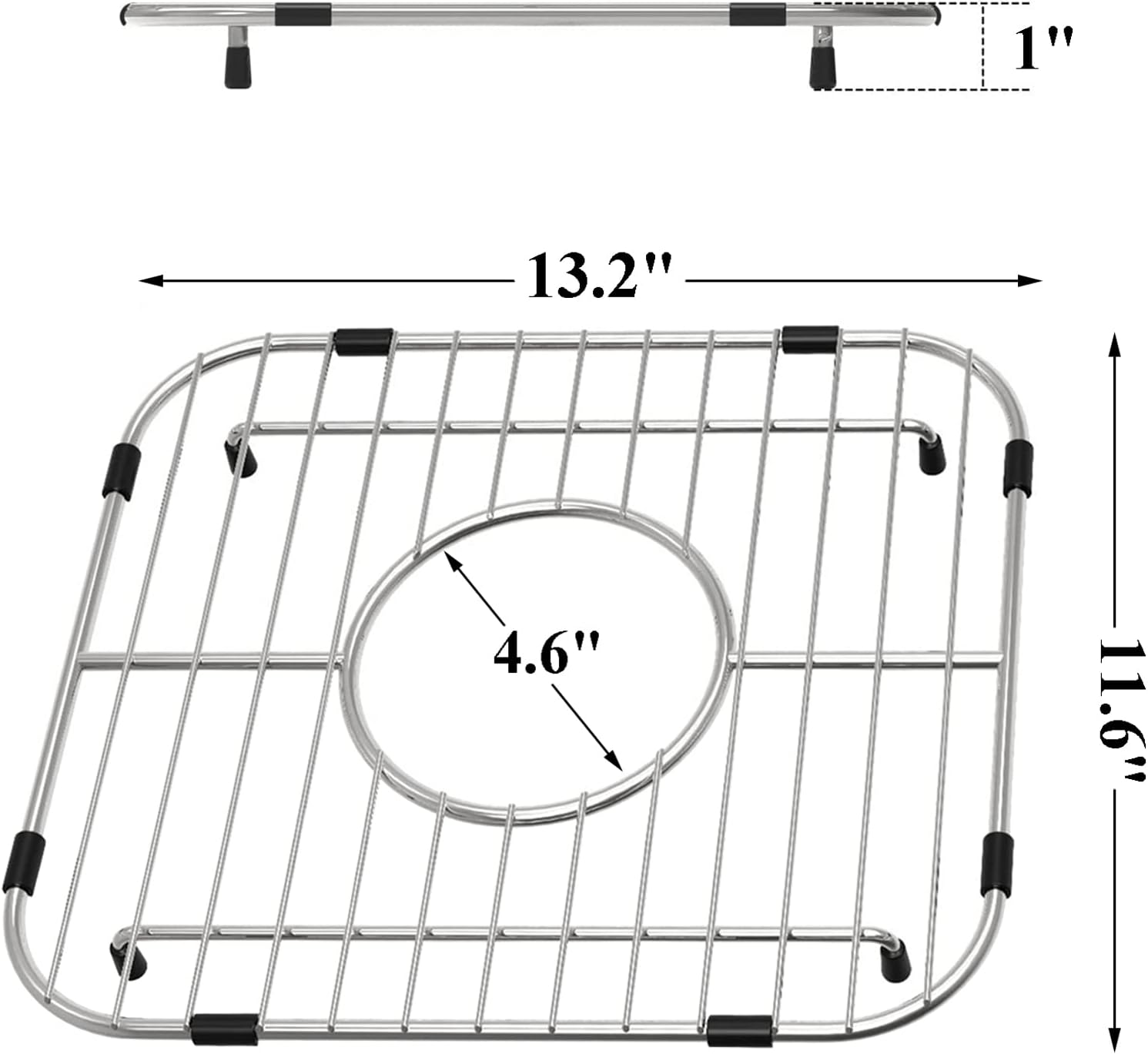 - Sink Grid Dimension - Length 13.2" x width 11.6", 1.5" corner radius. Please measure twice before purchasing. How to Measure: Please measure inside 1" from bottom of your ink to get the right size of grid. Not top inside of sink. There is side bumper on the grid, so please reserve at least 1/2" for both length and width with your measured size.)